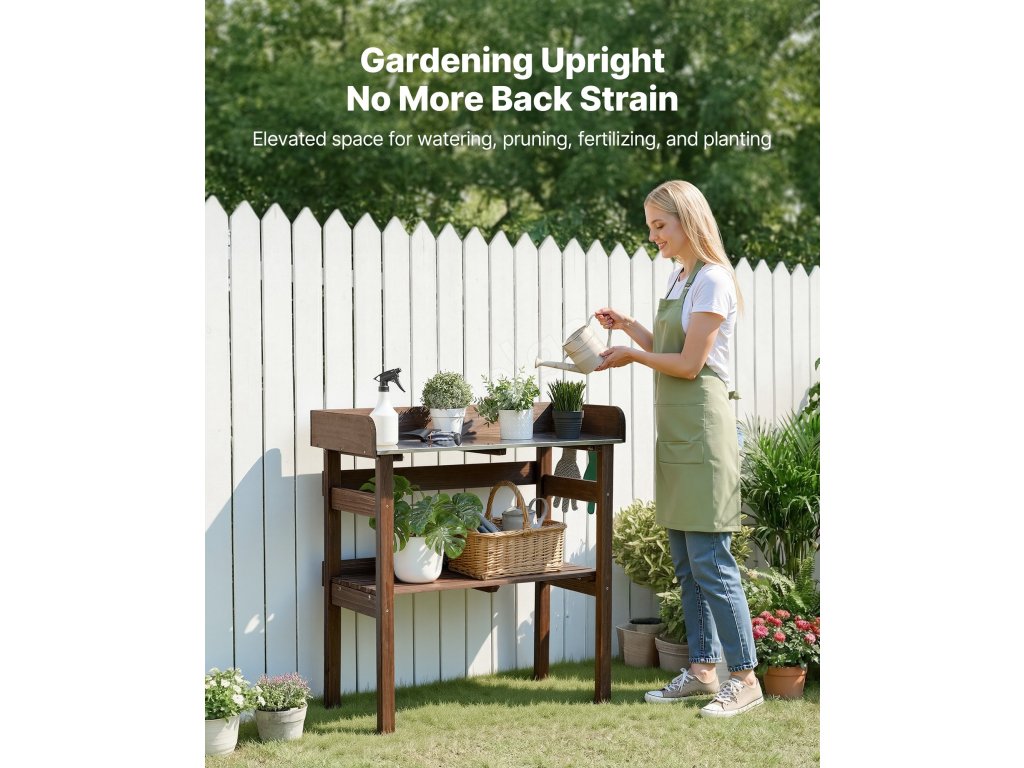 Tento stolek na sázení je skvělým pomocníkem při zahradničení. Poskytuje vyvýšený prostor pro zalévání, prořezávání, hnojení a sázení. Nemusíte se ohýbat ani klečet, což vám umožní pracovat vestoje bez bolesti zad.