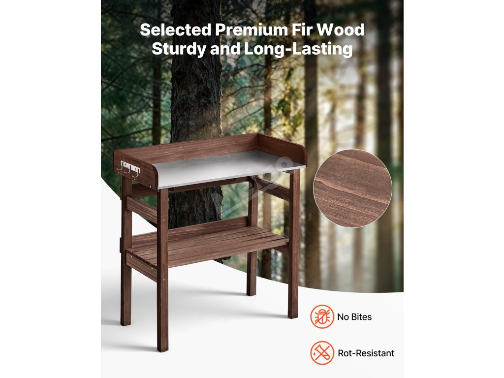 Náš stůl na sázení je vyroben z prvotřídního jedlového dřeva, odolává poškození a hnilobě a poskytuje vaší zahradě pevnou a dlouhou životnost.