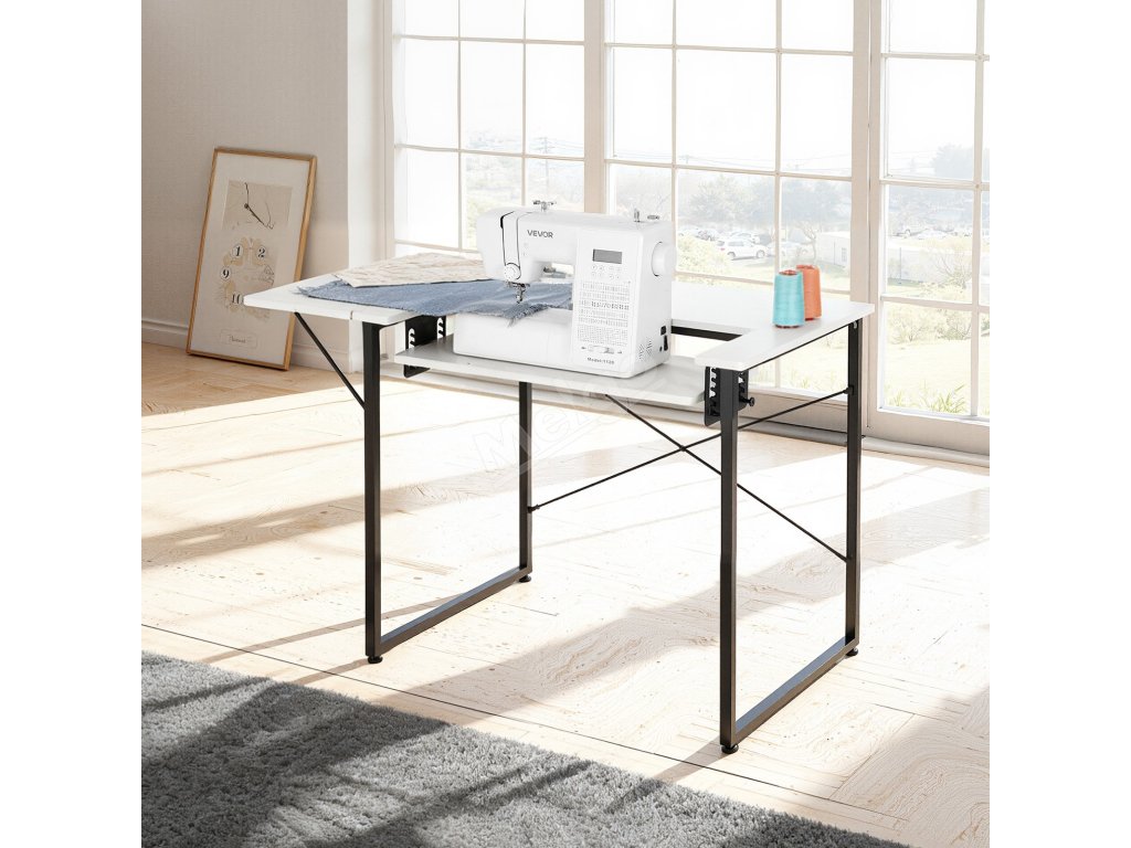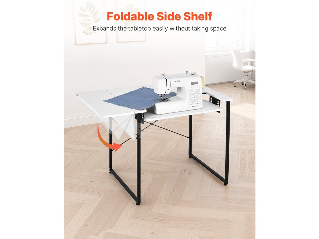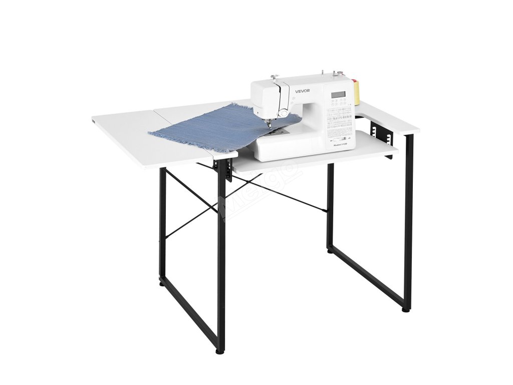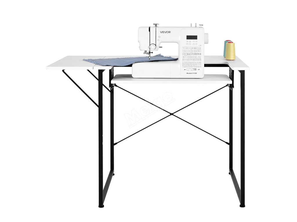 Stůl na šití s nastavitelnou policí, sklápěcí bočnicí, bílý