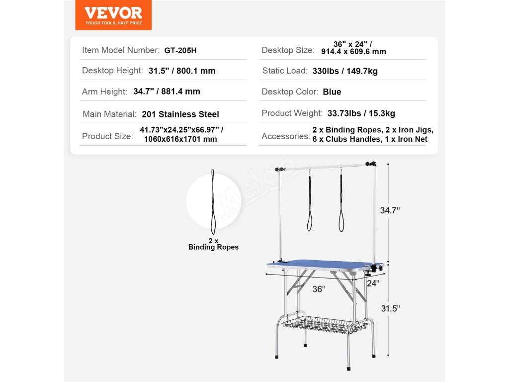 Náš stůl pro péči o domácí mazlíčky se může pochlubit několika promyšlenými konstrukčními detaily, včetně výklopného podpůrného rámu proti ohýbání, který zůstává stabilní, dvojitého vodítka pro bezpečné uvázání vašeho mazlíčka a protiskluzových, tepelně odolných gumových podložek pod nohy, které zabraňují klouzání a zajišťují pohodlný a bezpečný zážitek pro vašeho mazlíčka.