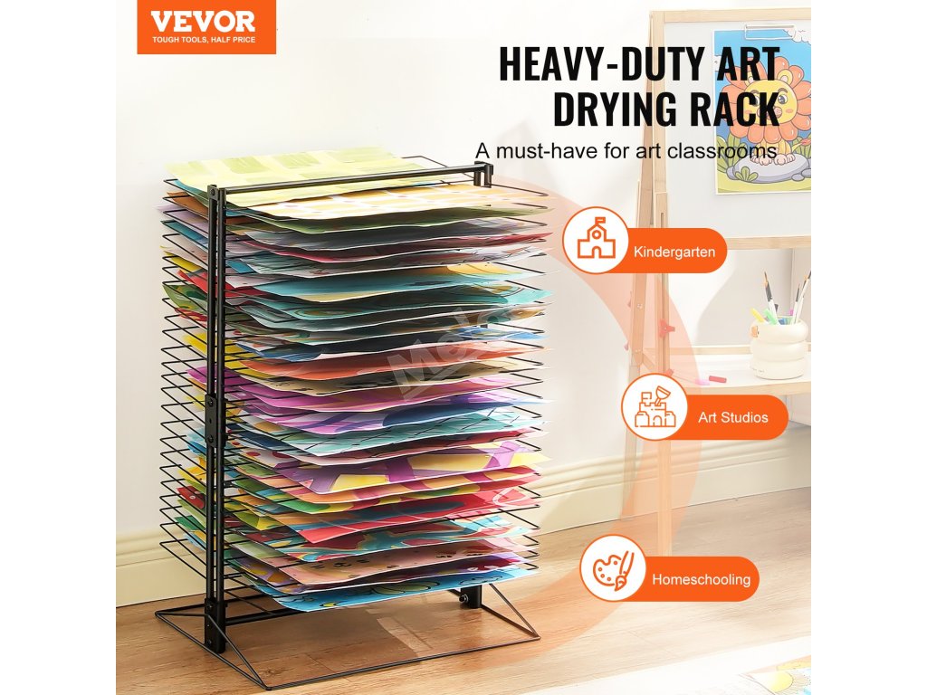 Tento stojan na sušenie farieb s nosnosťou 16,53 kg je ideálny na uloženie viacerých diel, pričom udržiava prúdenie vzduchu, aby sa urýchlilo sušenie. Je vhodný do škôl, škôlok, umeleckých ateliérov a na domáce vzdelávanie, možno doň umiestniť rôzne umelecké diela, ako je papier, ručné kresby a plátno.