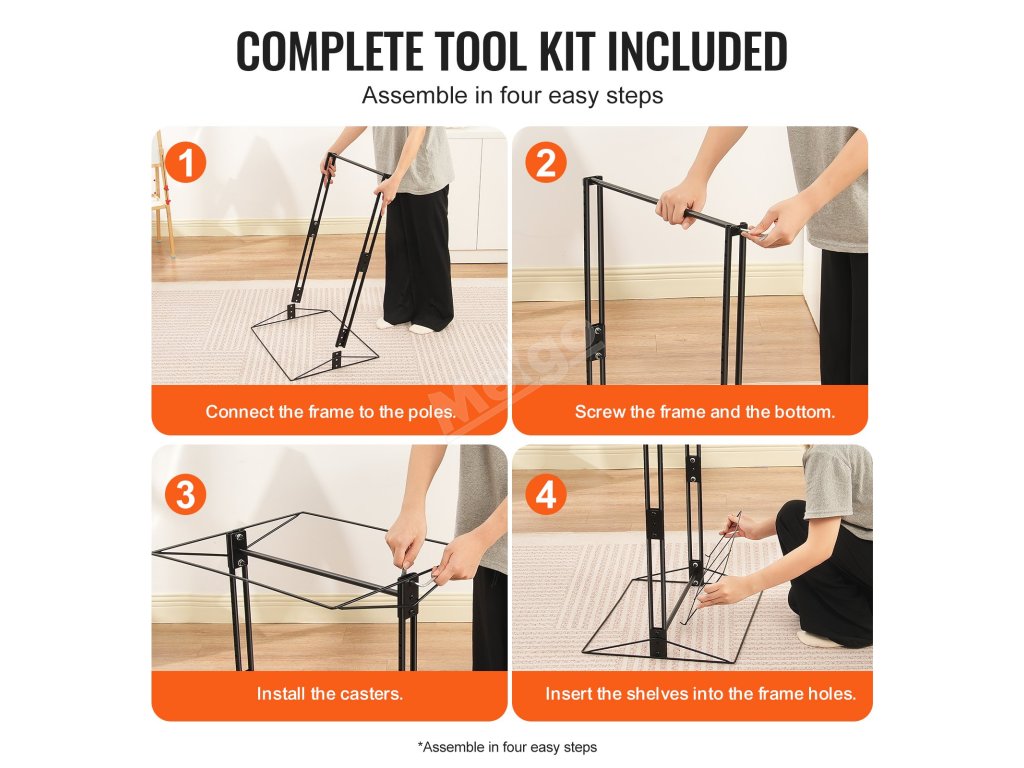 Jednoducho dokončite nastavenie v štyroch krokoch. Stojan na sušenie umeleckých predmetov do učebne obsahuje sadu nástrojov na inštaláciu a návod, takže nie sú potrebné žiadne ďalšie nástroje. Po rýchlej demontáži zaberá minimum miesta, zmestí sa aj do rohov, znižuje neporiadok vo vašej domácnosti a udržiava poriadok v priestore.