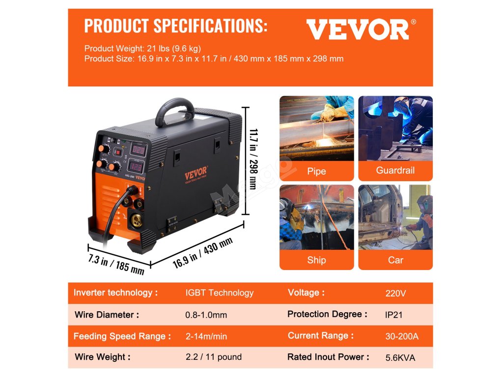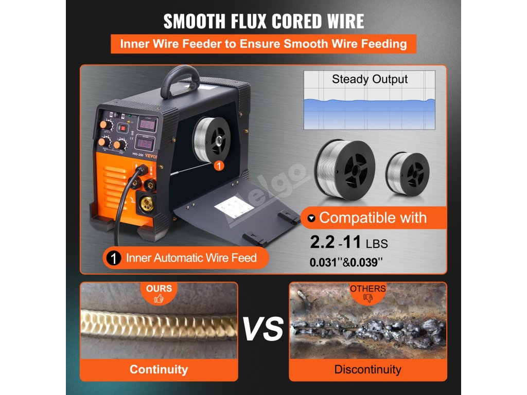 Tato svářečka s podávacím drátem používá pohodlný tavný drát, který během svařování uvolňuje kovový inertní plyn, aby se zabránilo oxidaci svaru. Dokáže svařovat svařovacím drátem 0,031"&0,039", váží 2,2 kg a 11 kg. Vysoce kvalitní integrovaný podavač drátu, který zajišťuje plynulé podávání drátu.