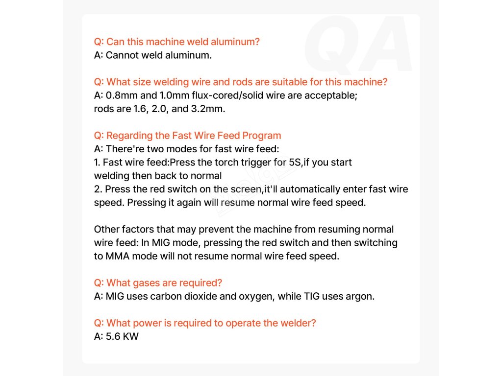 Svářecí panel je jednoduchý a snadněji se ovládá. Tři režimy lze snadno přepínat: MIG, MMA, TIG. Rychlost posuvu drátu, svařovací proud a napětí jsou nastavitelné. Můžete si je nastavit podle svého použití a různých tlouštěk stroje.