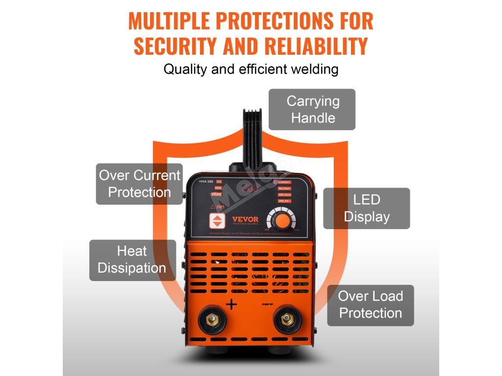 Zostavená z vysokokvalitných komponentov špeciálne navrhnutých na špičkové zváranie. Zariadenie obsahuje automatické ochranné funkcie, ktoré zabraňujú prehriatiu, nadmernému prúdu a prepätiu, čím zaisťujú bezpečnosť a zabraňujú poškodeniu.