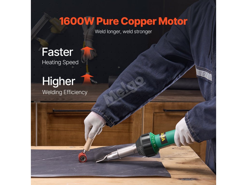 Horúcovzdušná zváračka plastov VEVOR je vybavená 1600W výkonným motorom z čistej medi, ktorý zabezpečuje rýchle zahrievanie na efektívne zváranie. Obsahuje sadu profesionálnej súpravy na zváranie plastov (so 17 kusmi príslušenstva). Vďaka 9-stupňovej regulácii teploty, účinnému chladeniu a dlhému napájaciemu káblu je ideálna pre začiatočníkov aj profesionálov.