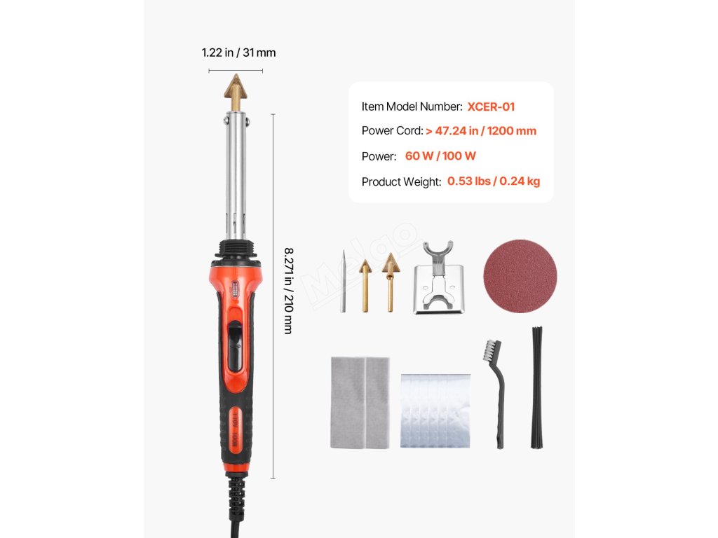 S naší svářečkou plastů s dvojitým výkonem 60 W/100 W snadno opravíte plastové předměty! Díky rychlému zahřátí, 3 svařovacím hrotům, 20 svařovacím tyčím a kompletní sadě příslušenství tato pájka bez námahy splní vaše potřeby při opravách plastů - ideální pro palubní desky, kajaky, nárazníky aut, hračky, elektroniku atd.
