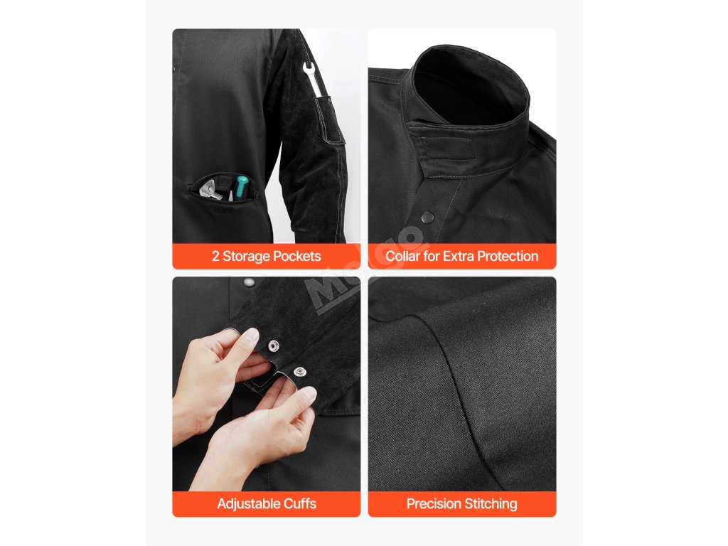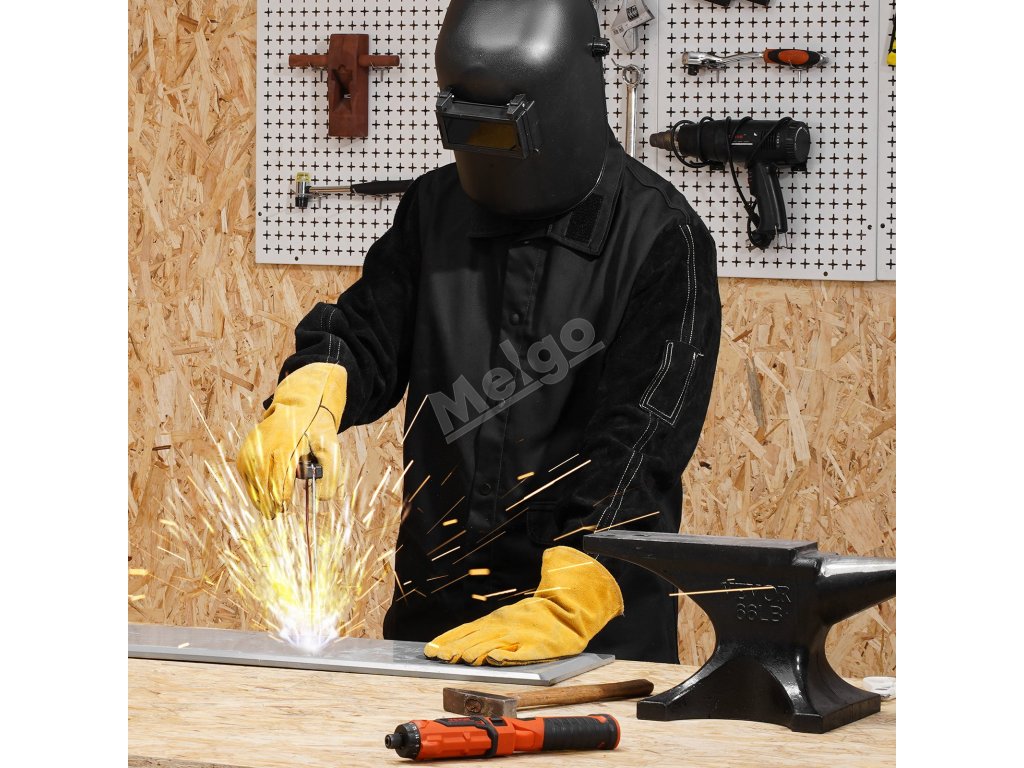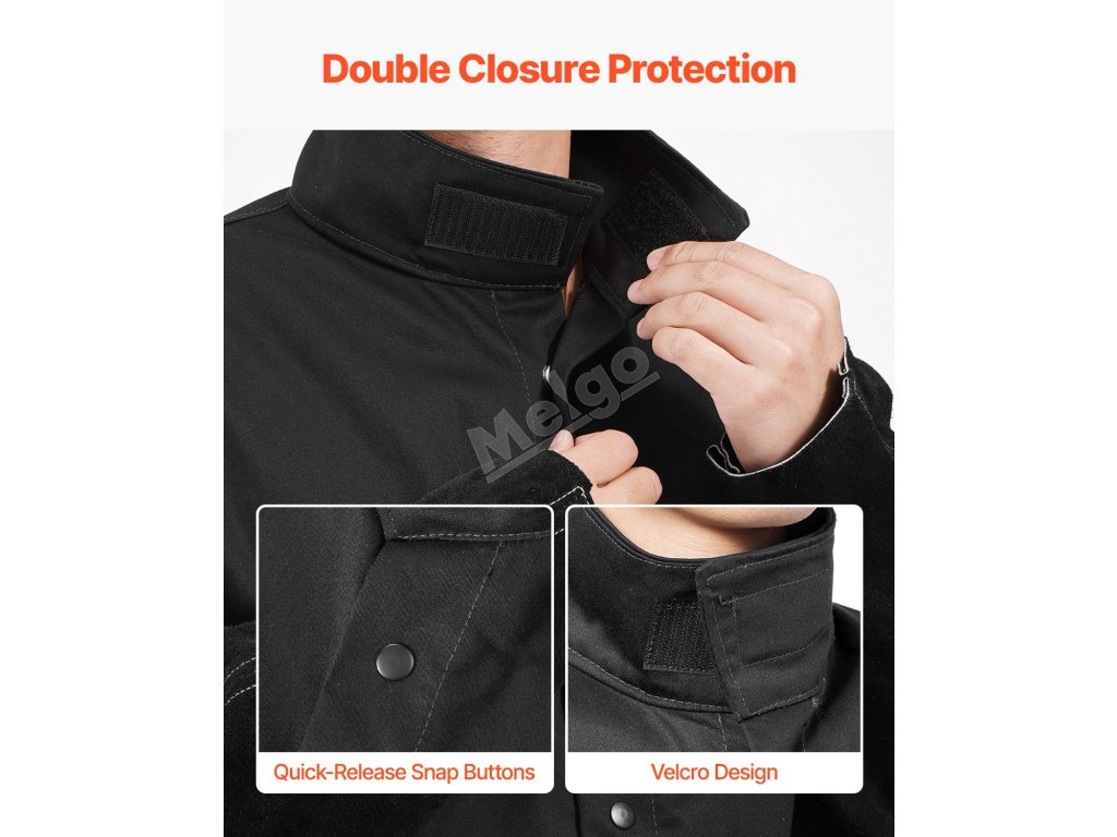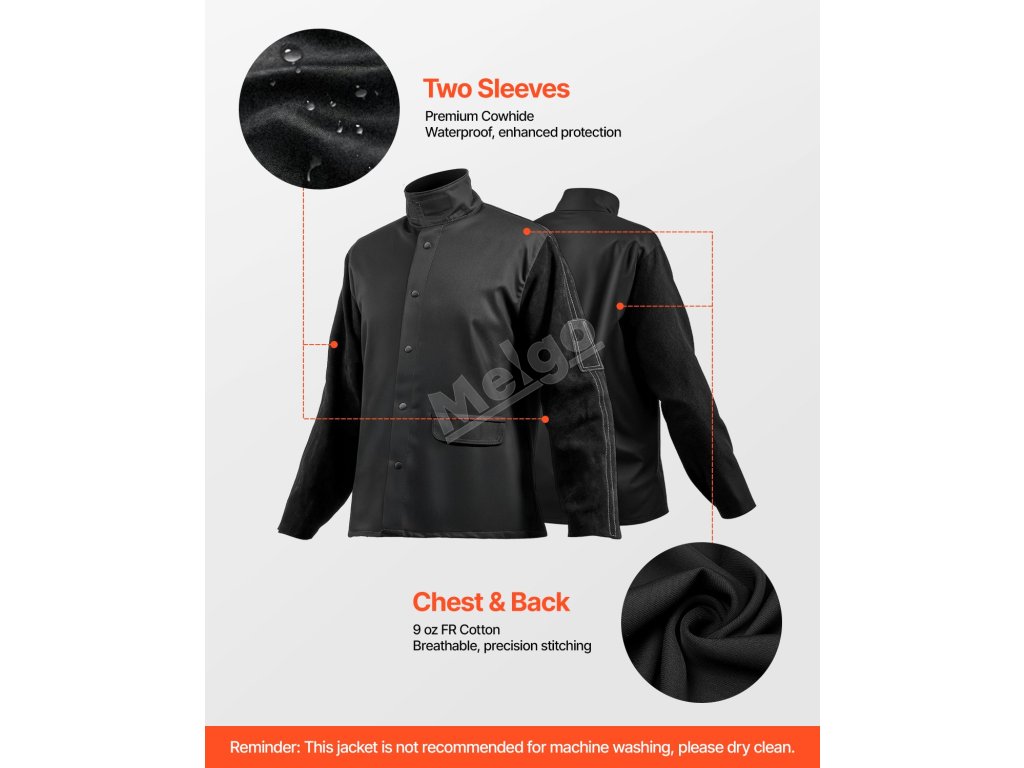 Zůstaňte v bezpečí a pohodlí s naší nehořlavou svářečskou bundou. Tato bunda je vyrobena z odolné štípané hovězí kůže s rukávy a 9uncového těla z nehořlavé bavlny, je žáruvzdorná a trvanlivá a nabízí spolehlivou ochranu před jiskrami a plameny. Je to váš ideální společník při svařování.