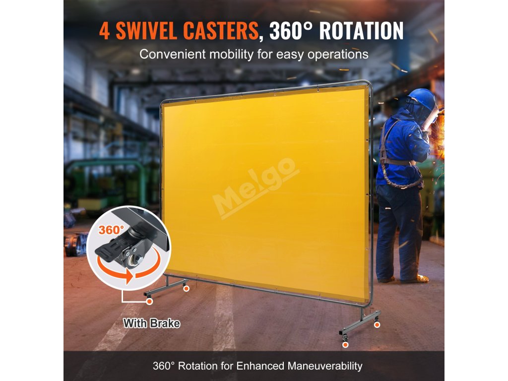 Díky otočné konstrukci se 4 koly můžete bez námahy dosáhnout 360° rotační mobility svářecí plachty, zatímco 2 kola s brzdami zajišťují stabilní parkování v případě potřeby. Už žádné starosti s polohováním plátna, díky čemuž budou svářečské práce pohodlnější.