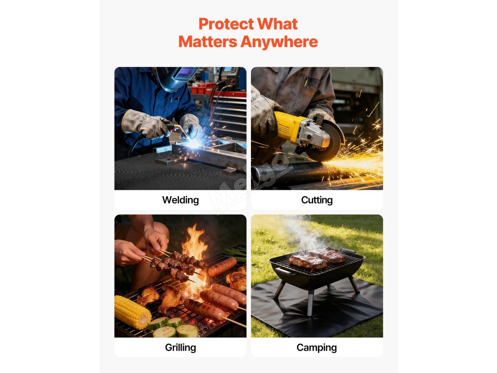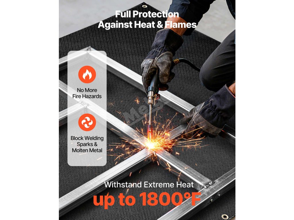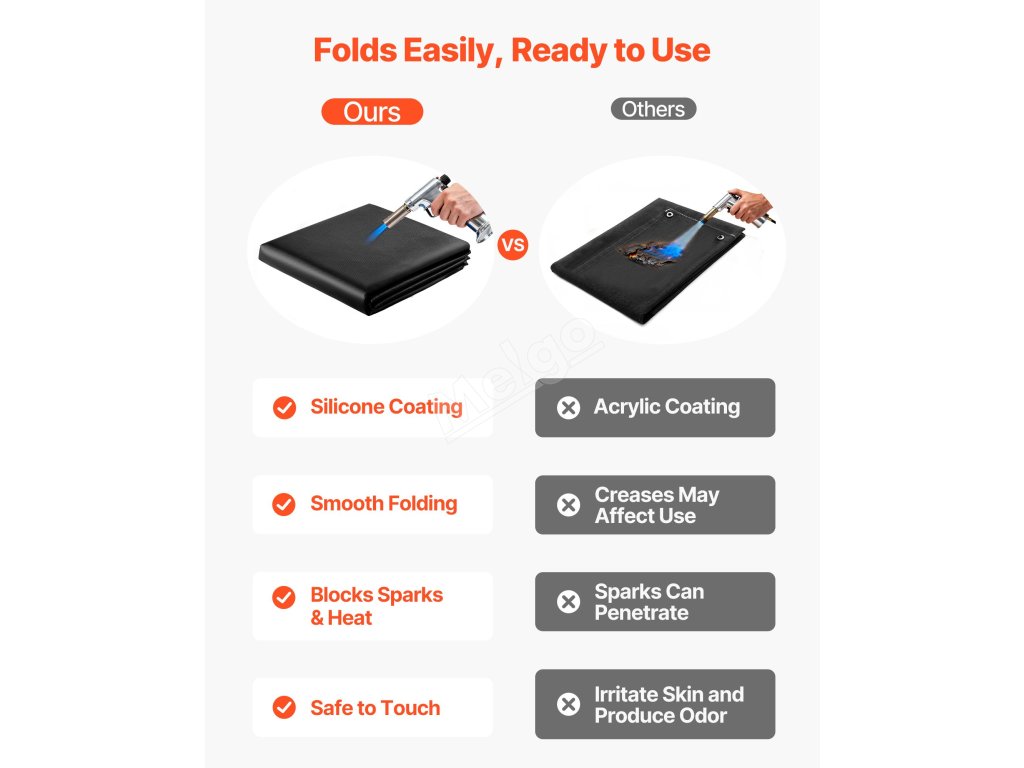 Svářecí deka VEVOR 6 x 8 stop ze skleněných vláken se silikonovým povlakem odolává teplotám až 1800 °F a nabízí vynikající odolnost proti plameni, chrání před jiskrami při svařování a roztaveným rozstřikem. Zůstaňte v bezpečí před rizikem požáru a užijte si bezpečnější a efektivnější práci.