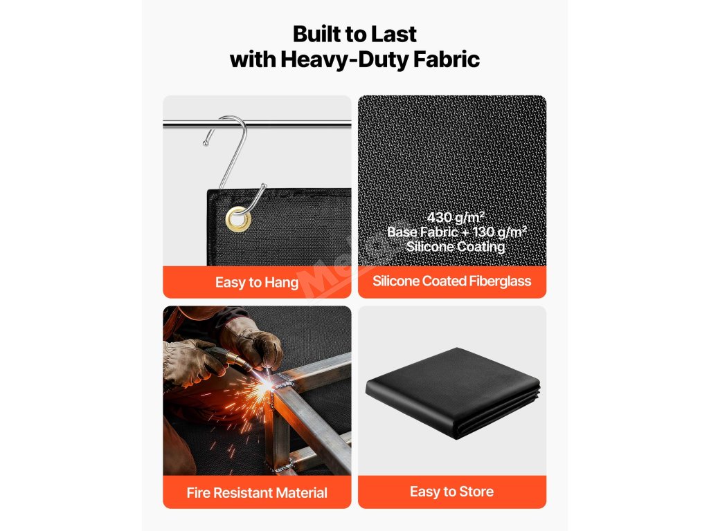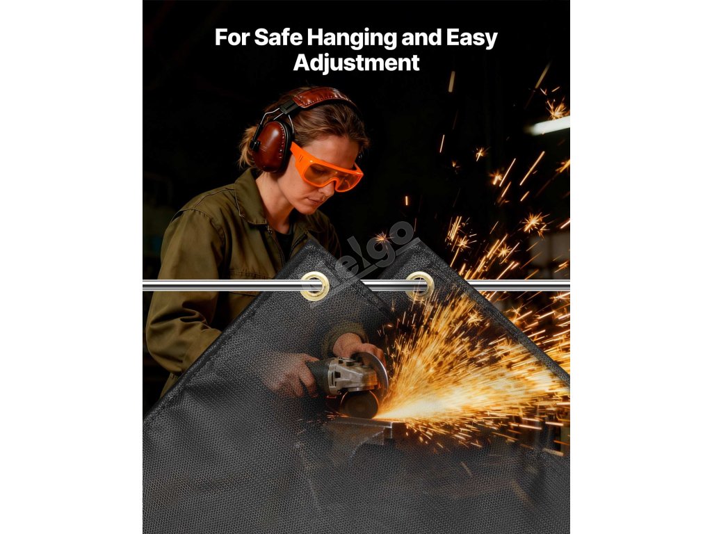 Svařovací deka je navržena s kovovými průchodkami, takže ji lze snadno a bezpečně zavěsit. Je lehká a stohovatelná, snadno se skladuje a pohodlně přenáší z místa na místo.