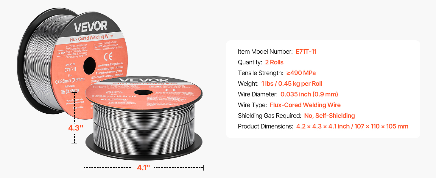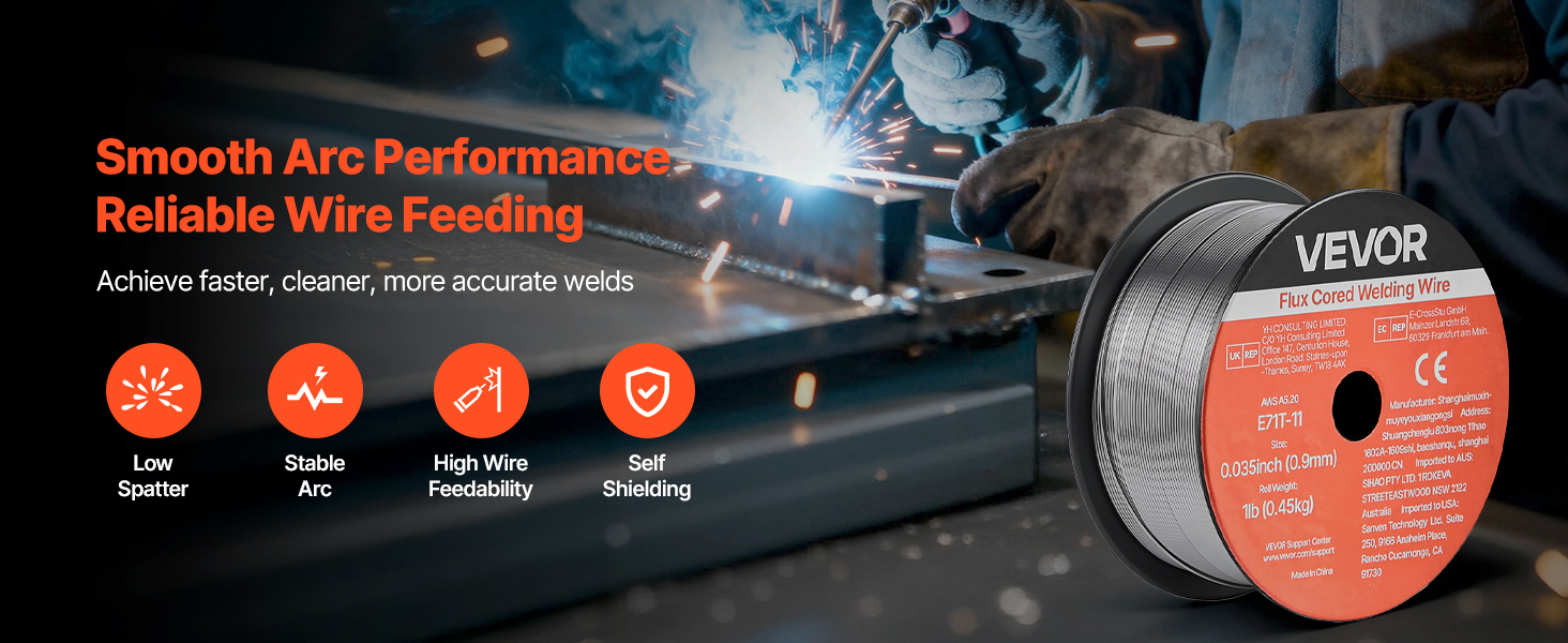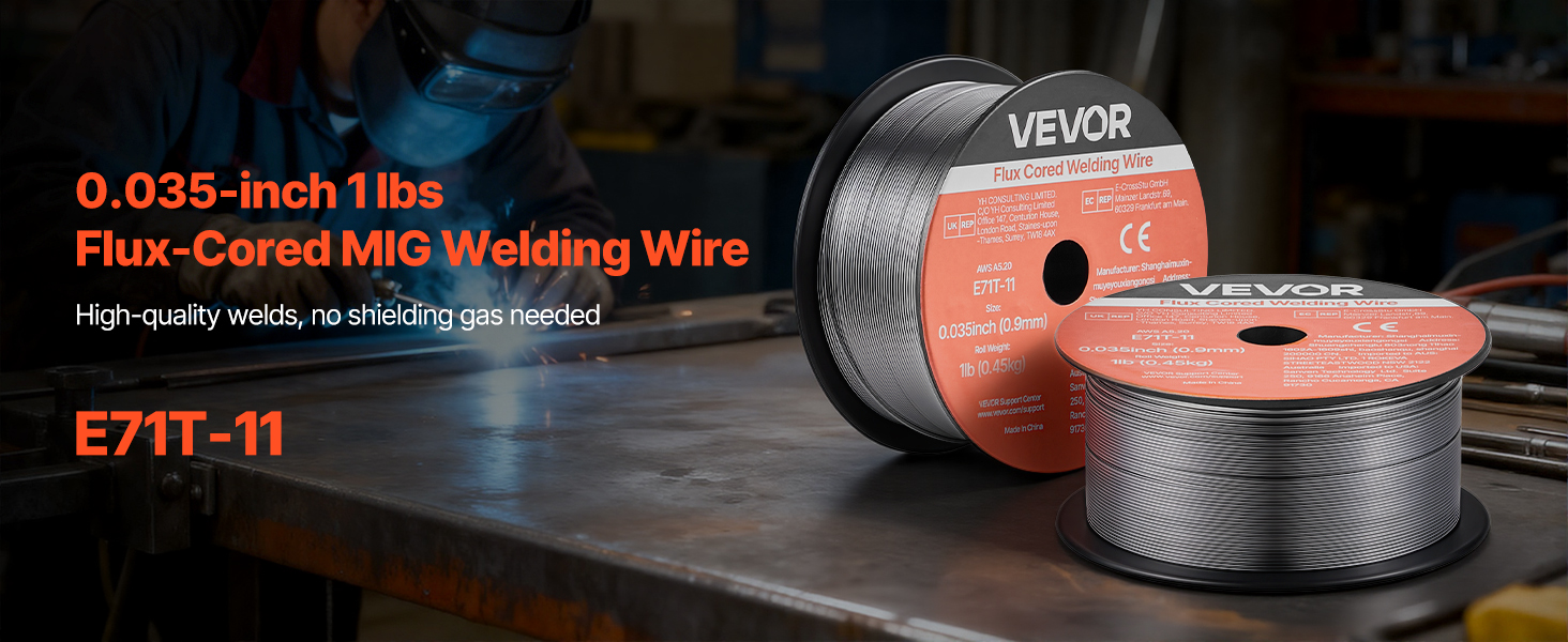 Tavný svařovací drát VEVOR 0,035" 1 lbs E71T-11 poskytuje pevné a konzistentní svary s hladkým posuvem drátu a nízkým rozstřikem. Podporuje svařování bez plynu ve všech polohách, vícenásobné svařování a vysokou pevnost v tahu pro spolehlivý výkon při svařování v automobilovém průmyslu, strojírenství a při kutilských projektech.