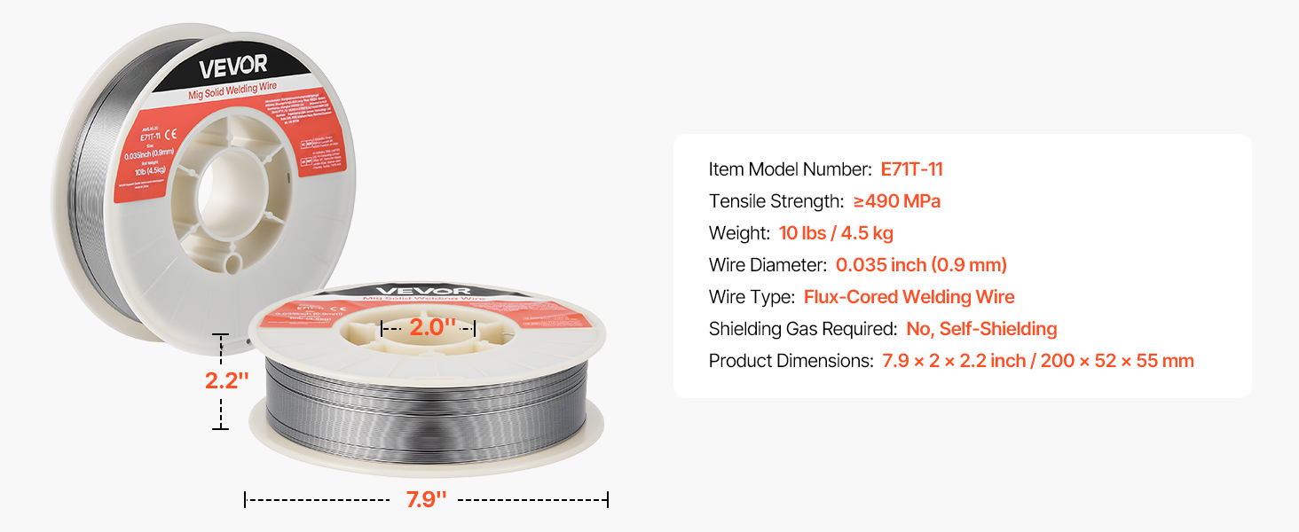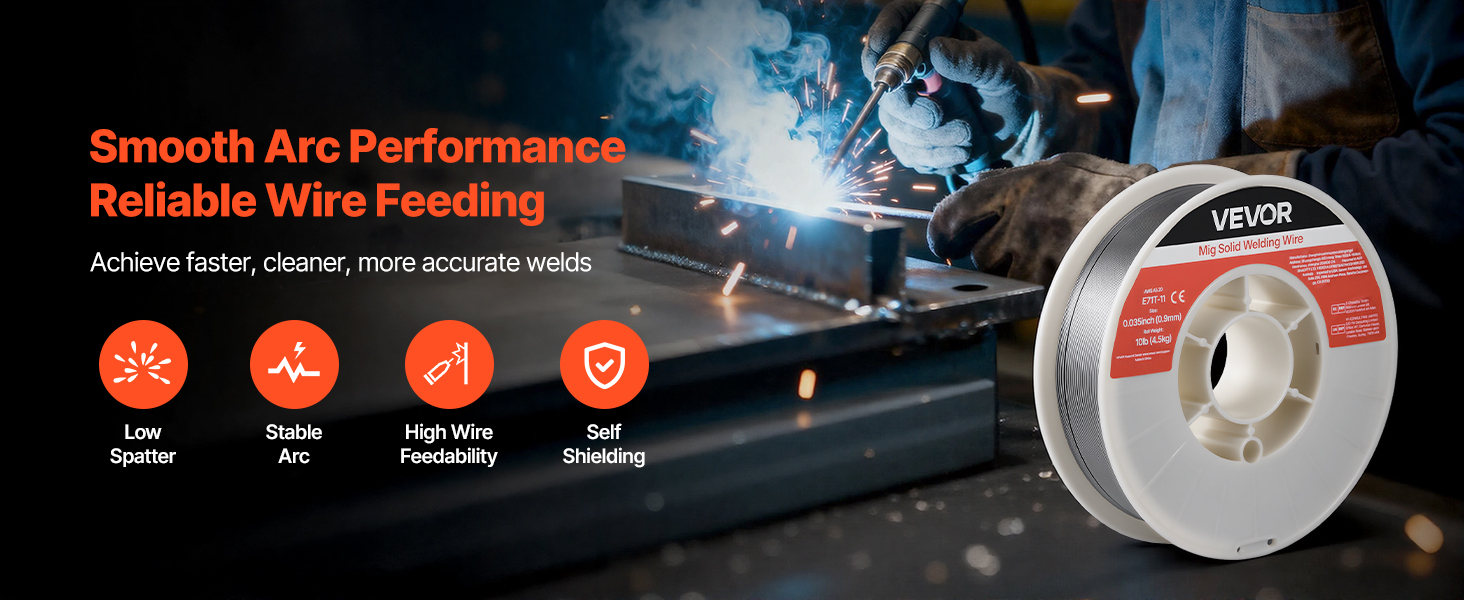 Svařovací drát VEVOR 0,035" 10 lbs E71T-11 poskytuje pevné a konzistentní svary s hladkým posuvem drátu a nízkým rozstřikem. Podporuje svařování bez plynu ve všech polohách, vícenásobné svařování a vysokou pevnost v tahu pro spolehlivý výkon při svařování v automobilovém průmyslu, strojírenství a při kutilských projektech.