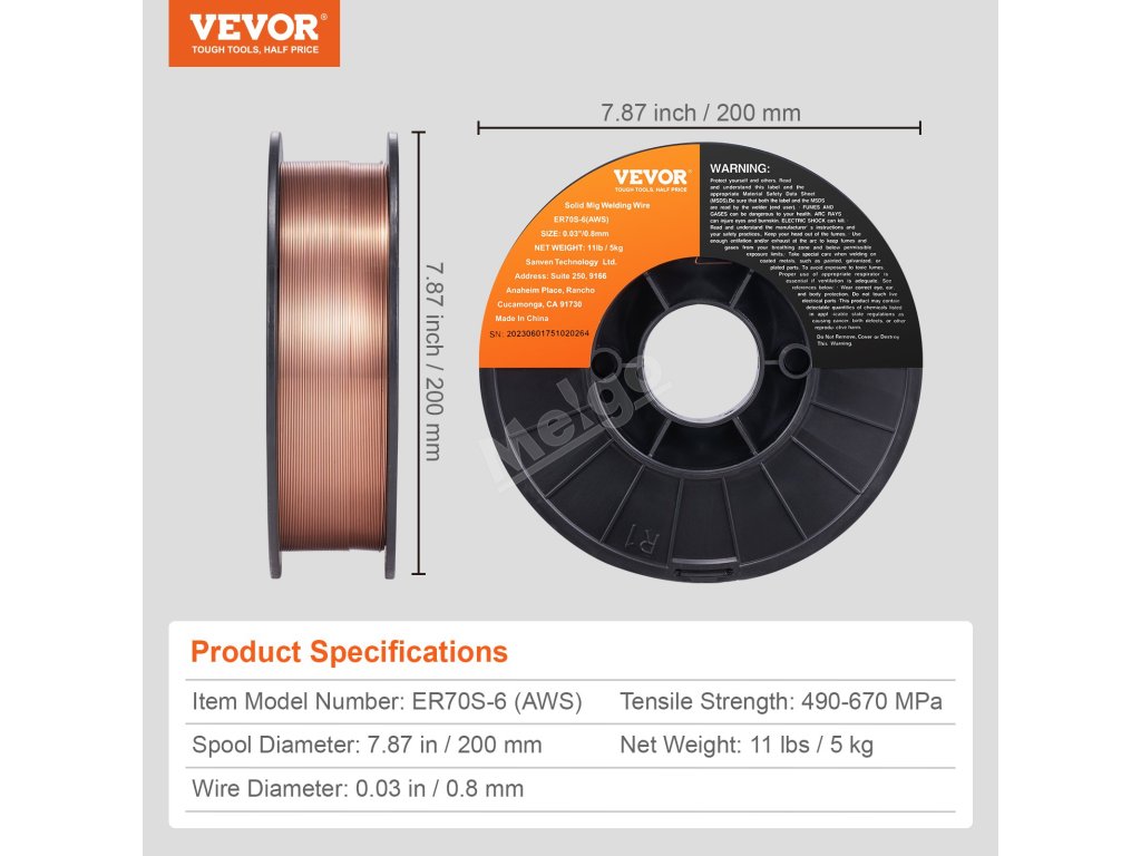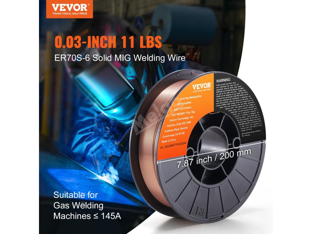 VEVOR ER70S-6 0,03" 11LBS pevný svařovací drát MIG je vysoce výkonné a spolehlivé řešení svařování. Díky svým vynikajícím svařovacím vlastnostem, sníženému rozstřiku a přizpůsobivosti je preferovanou volbou pro různé aplikace svařování uhlíkové oceli, což vám zajistí vždy dokonalý svar!