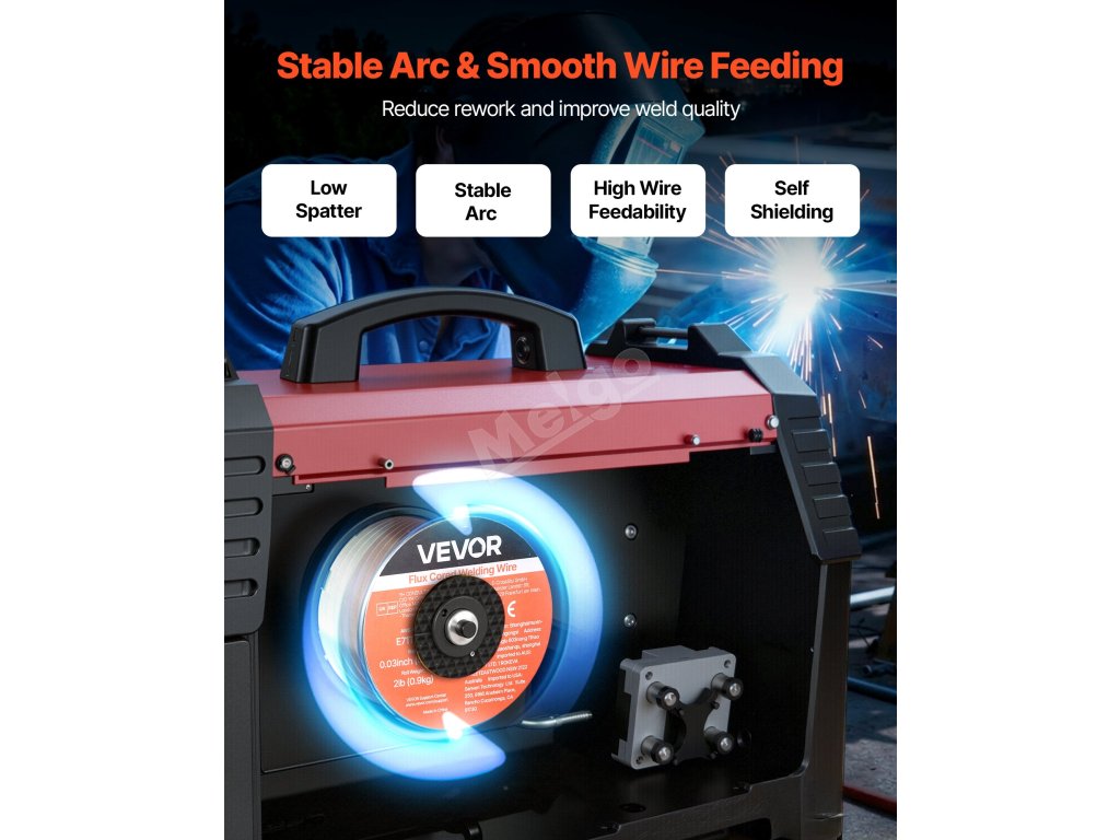 Svařovací drát VEVOR 0,03" 2 lbs E71T-GS pro svařování metodou MIG s tavidlem poskytuje pevné a konzistentní svary s hladkým posuvem drátu, nízkým rozstřikem a samostíněním. Podporuje svařování bez plynu ve všech polohách a vysokou pevnost v tahu pro spolehlivý výkon v automobilovém průmyslu, strojírenství a při svařování pro kutily.