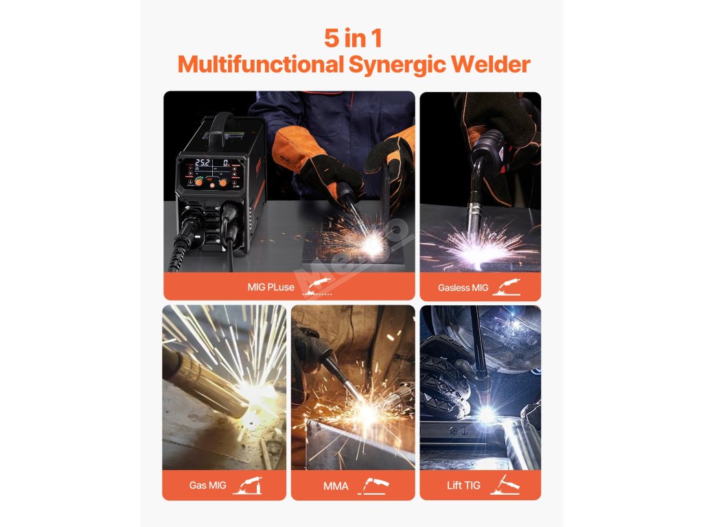 | Funkcie | Bezplynová MIG, plynová MIG, MMA, Lift TIG, MIG Pluse |