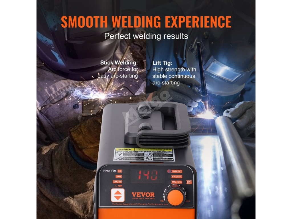 Zváračka VEVOR Stick and Lift Tig je vybavená dvoma režimami zvárania s automatickým prepínaním jedným dotykom, je vhodná na zváranie nehrdzavejúcej ocele, mäkkej ocele a iných kovov, je dodávaná s odolným držiakom elektród, zemniacou svorkou a zváracou tyčou, takže môžete začať zvárať hneď.