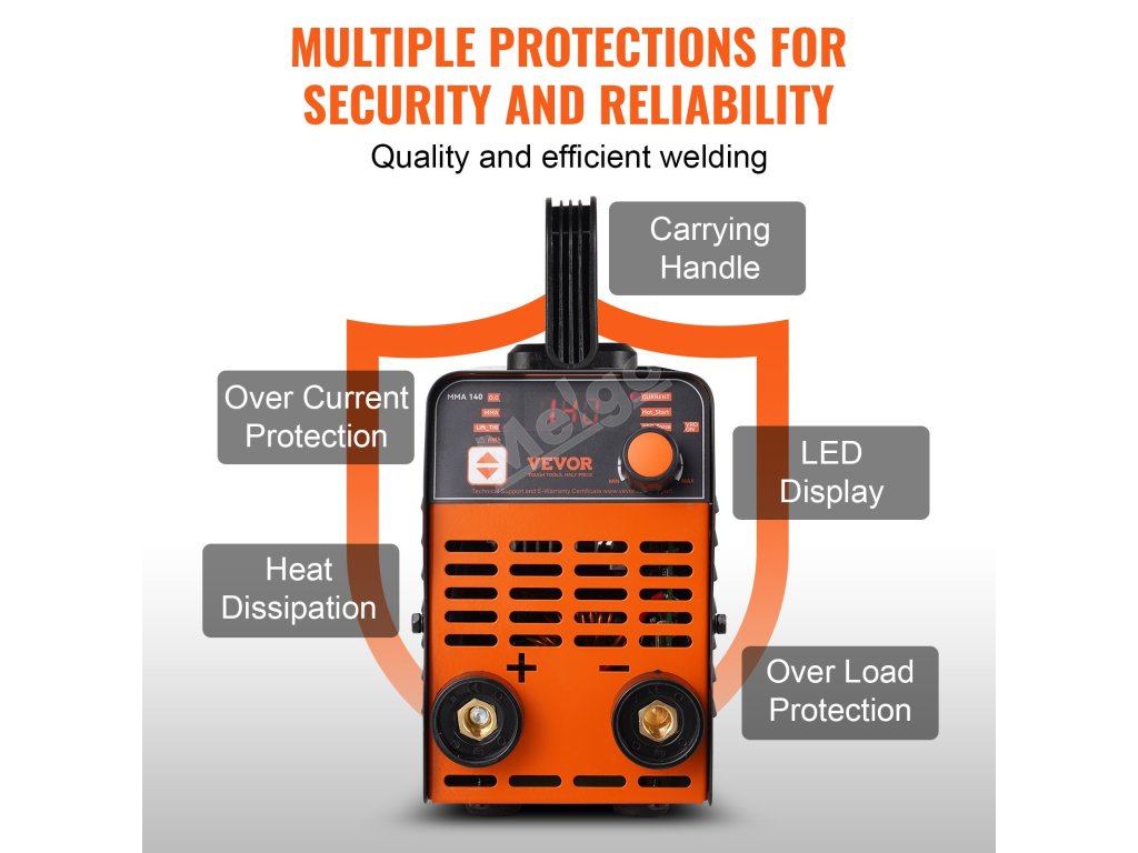Zostavená z vysokokvalitných komponentov špeciálne navrhnutých na špičkové zváranie. Zariadenie obsahuje automatické ochranné funkcie, ktoré zabraňujú prehriatiu, nadmernému prúdu a prepätiu, čím zaisťujú bezpečnosť a zabraňujú poškodeniu.