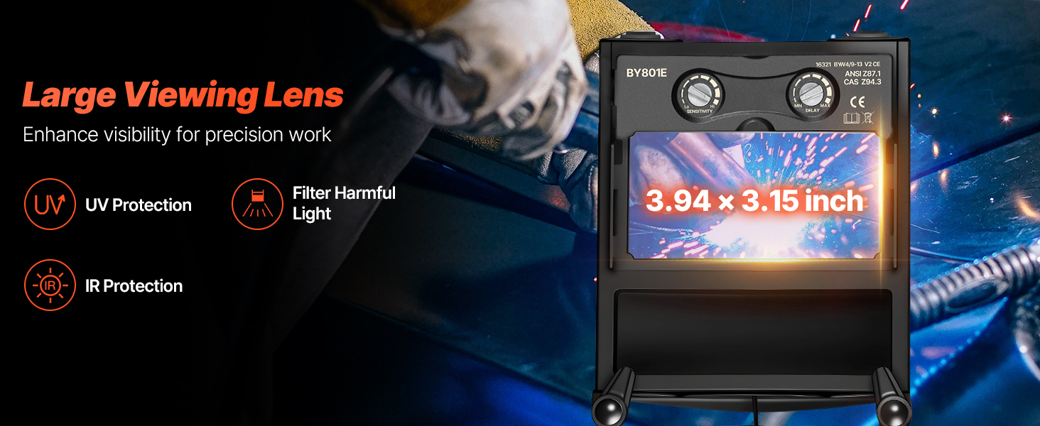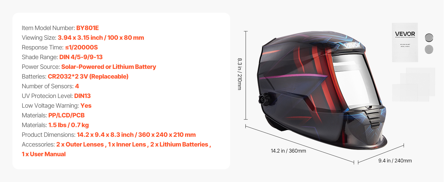 Tato svářečská maska je vyrobena z vysoce kvalitního materiálu a nabízí výjimečnou odolnost proti nárazu a vysokým teplotám. Účinně blokuje odletující jiskry a popáleniny způsobené vysokými teplotami a poskytuje spolehlivou ochranu vašeho obličeje a očí.