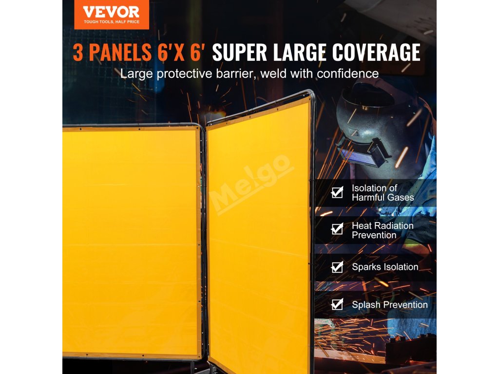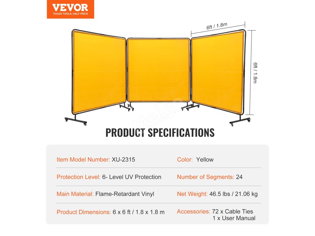Jste připraveni posunout bezpečnost svařování na vyšší úroveň? Už nehledejte nic jiného! Svářečská zástěra VEVOR 3-Panel 6 x 6 FT s rámem je zde, aby nabídla vynikající odolnost proti plameni, šestistupňovou ochranu proti UV záření, stabilní rám a 12 koleček otočných o 360°, což z ní činí dokonalého společníka pro bezpečné pracoviště.