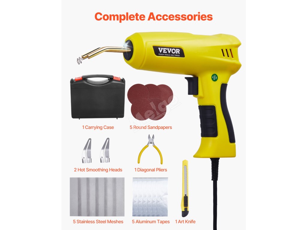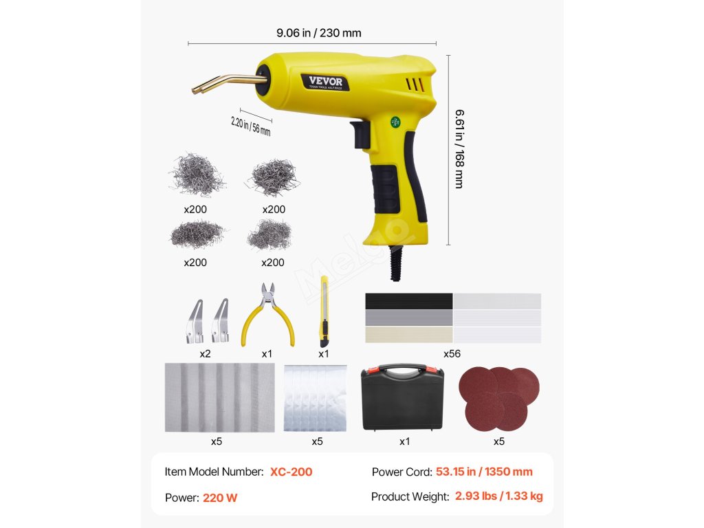 S naší 220W svářečkou plastů snadno opravíte plastové předměty! Díky rychlému zahřátí, 800 ks horkých spon, 56 svařovacím tyčím, bohatému příslušenství a vestavěnému vysokoteplotnímu chrániči tato svářečka bez námahy splní vaše potřeby při opravách plastů a je ideální pro různé scénáře oprav plastů!