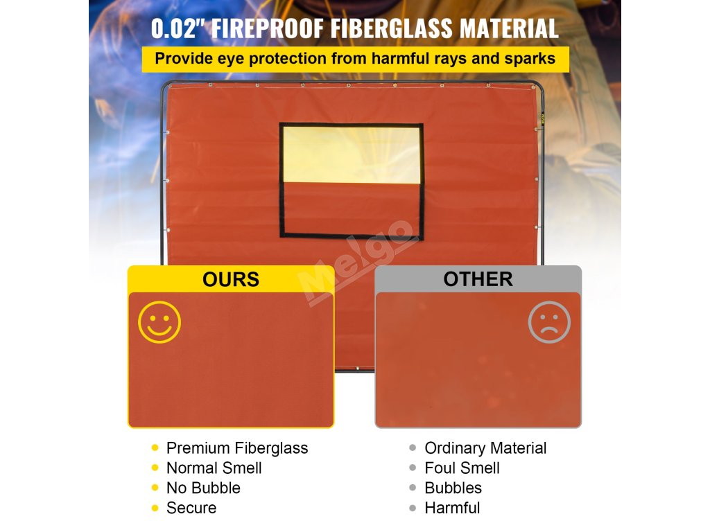 Rám zástěny je vyroben z prvotřídního červeného sklolaminátu, takže je odolný proti UV záření a poskytuje vynikající ochranu pro okolní osoby.