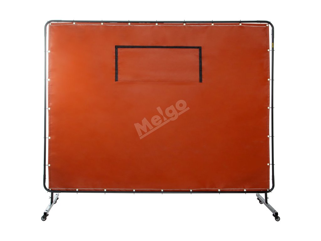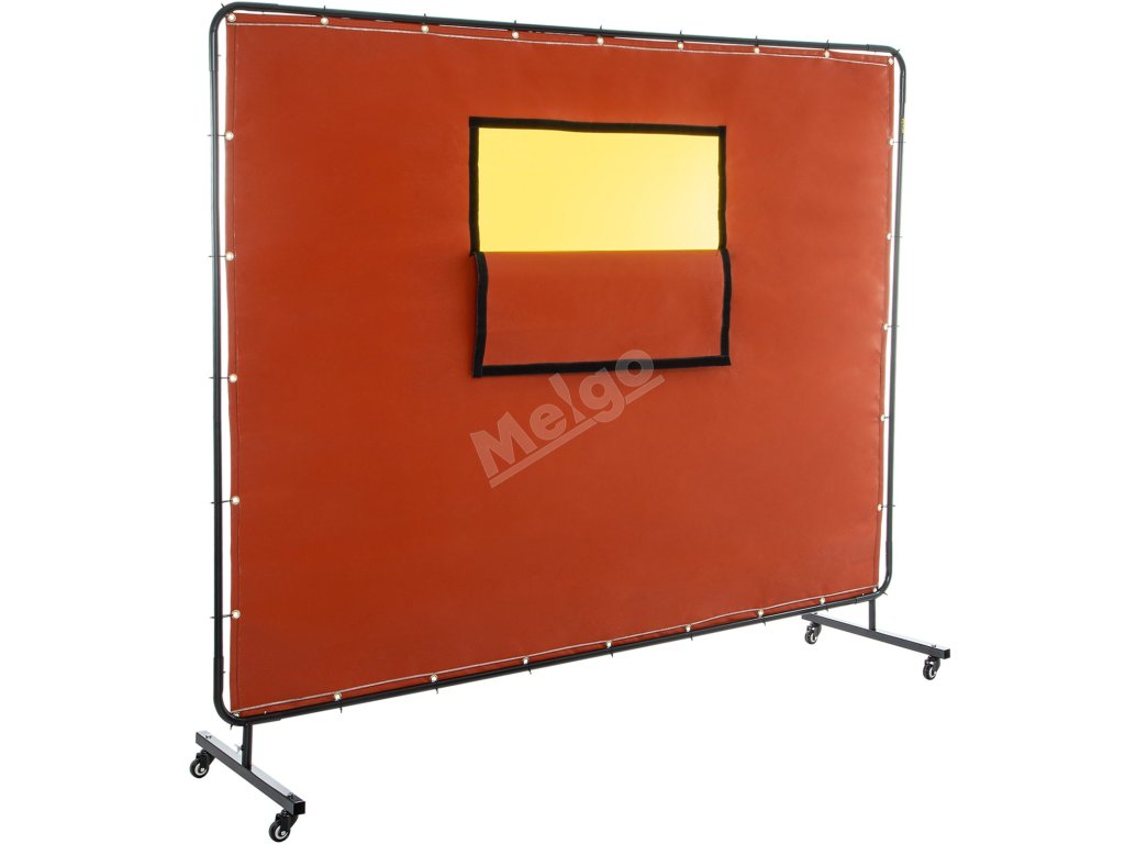 Svařovací závěs 6'×8' nehořlavý sklolaminát, rám, 4 kolečka, červený