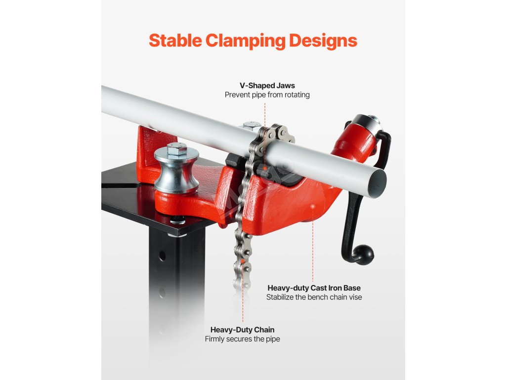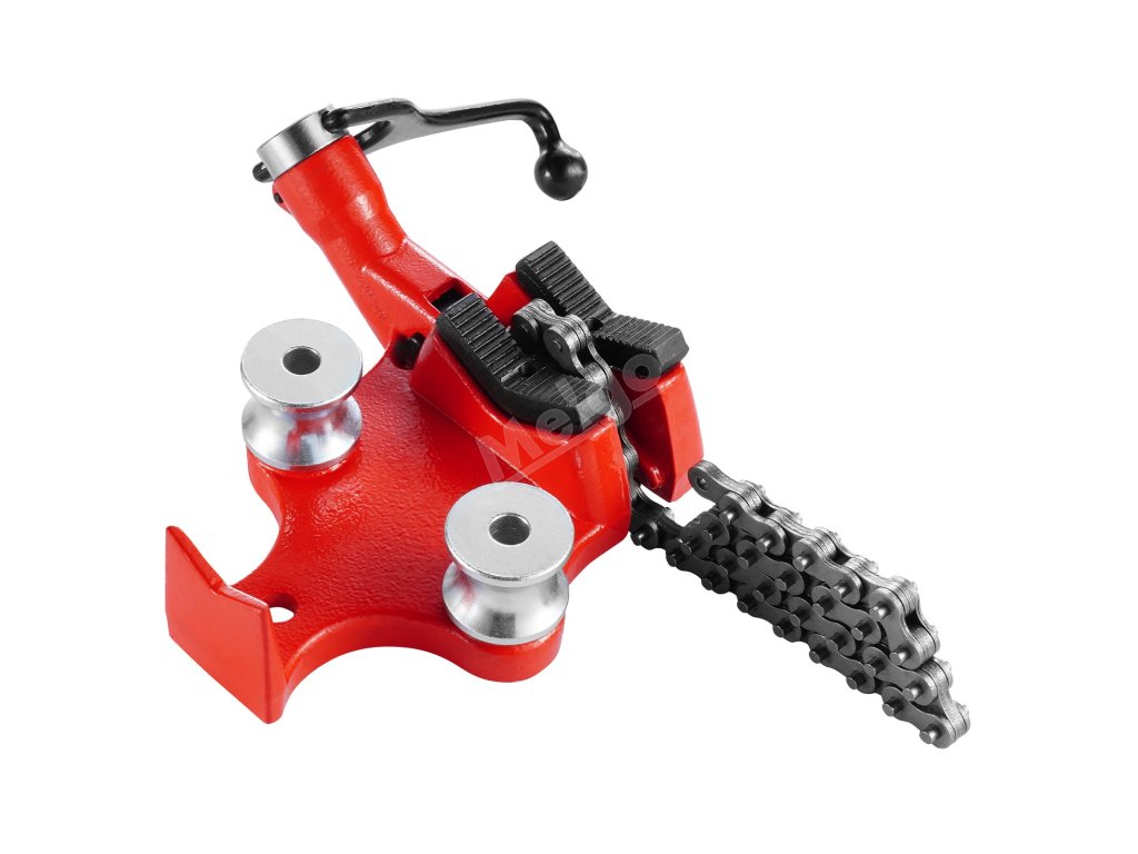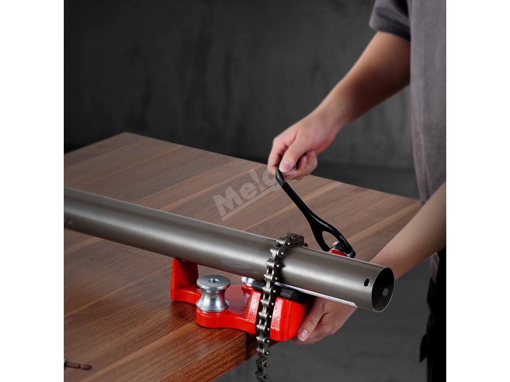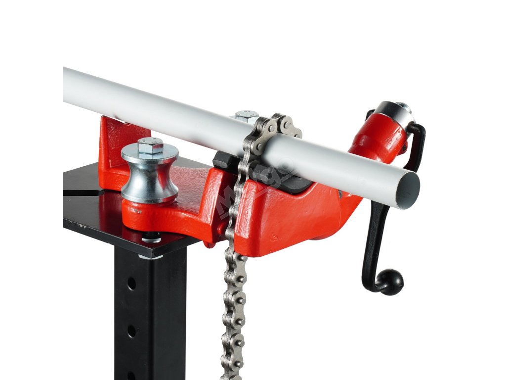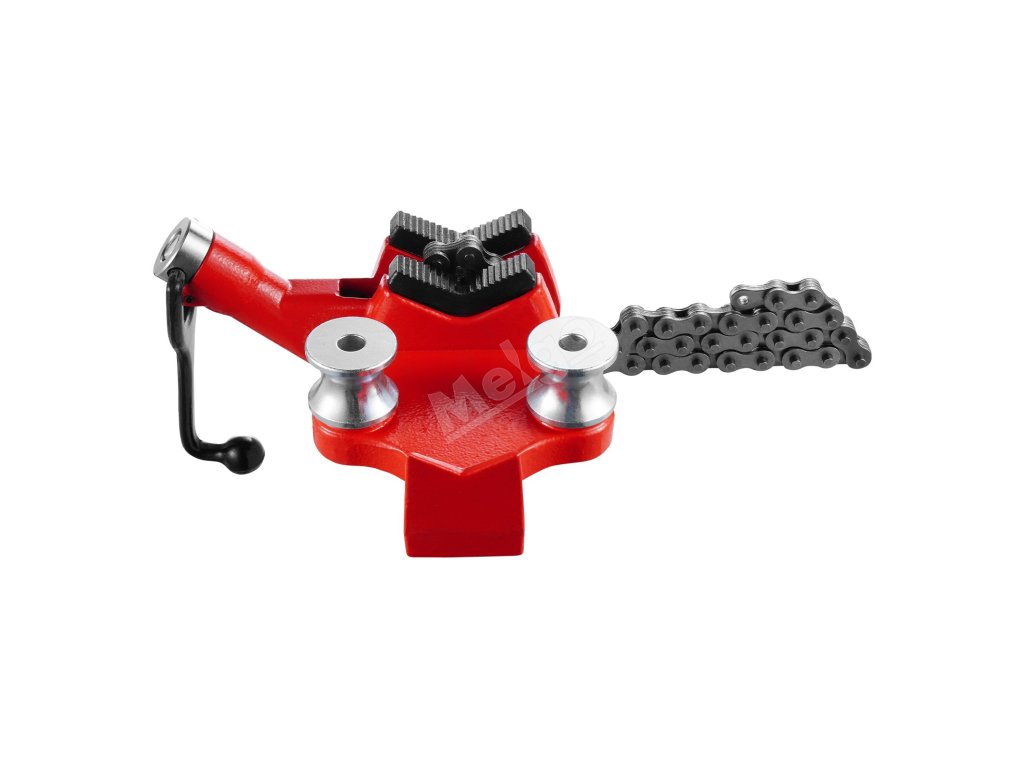 Tento šroubovací stolní svěrák na řetěz je vybaven ergonomickou klikovou rukojetí a odolnou litinovou základnou, která zajišťuje stabilní a bezpečný provoz. Je ideální pro širokou škálu úkolů při zpracování trubek.