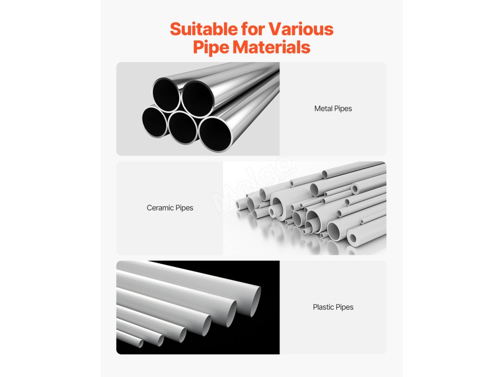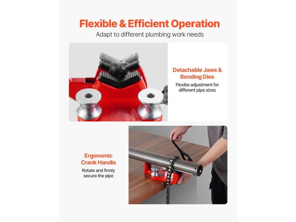 Náš řetězový svěrák na trubky je vybaven protiskluzovými čelistmi ve tvaru V a odolným řetězem, který zajišťuje stabilní a bezpečné uchopení a chrání trubky před poškozením během zpracování.