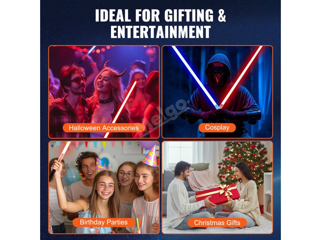Tento světelný meč je nejen hračkou pro děti, ale také skvělou volbou pro oslavy a hraní rolí pro dospělé. Skvěle se hodí na Halloween, narozeninové oslavy i vánoční dárky, dodá dárkům osobitost a vašim setkáním více zábavy!