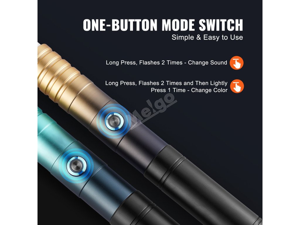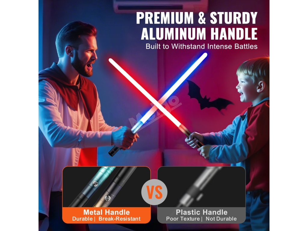 Je vyroben s kovovou rukojetí a poskytuje pohodlný a texturovaný úchop pro realističtější zážitek. Kovová rukojeť je nejen pevná a odolná, ale také účinně zabraňuje vyklouznutí, což umožňuje dětem volně máchat světelným mečem a užívat si vzrušení z boje!