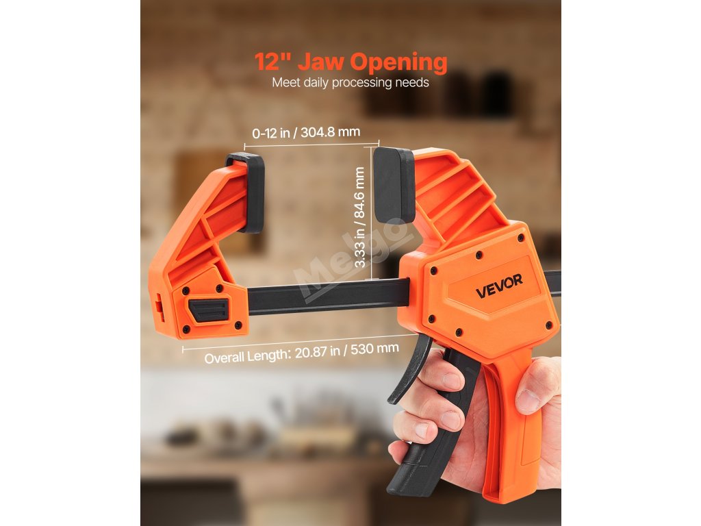 Dvanáctipalcový otvor čelistí tyčové svěrky je navržen tak, aby se do něj vešly různé druhy dřeva standardní velikosti, což uživatelům poskytuje více prostoru pro nastavení při práci a zajišťuje přesné polohování během zpracování.
