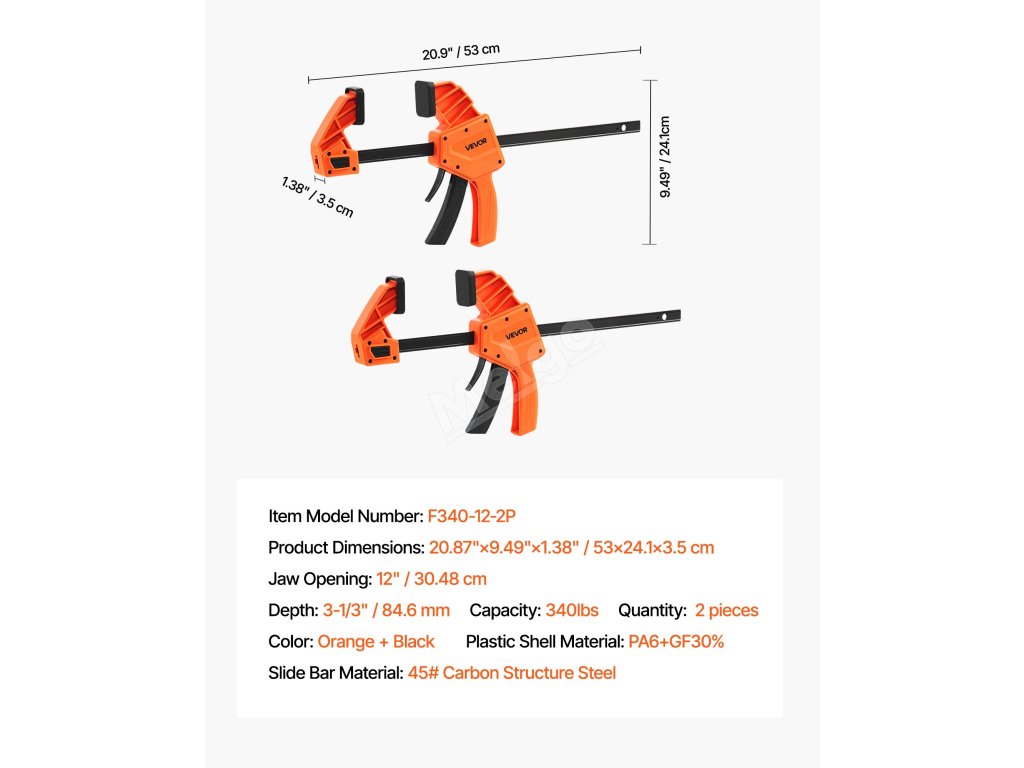 Svorky na dřevo 2 ks, 30.48 cm, jednoruční, nosnost 154 kg