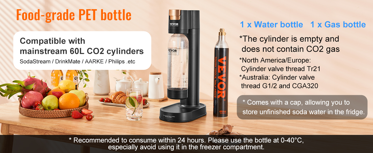 Náš výrobník sody se zaměřuje na snadné použití a dodává chladnou vodu již za 3 sekundy. Pro bohatší bublinky a lepší chuť doporučujeme používat studenou vodu o teplotě 4-5 °C.