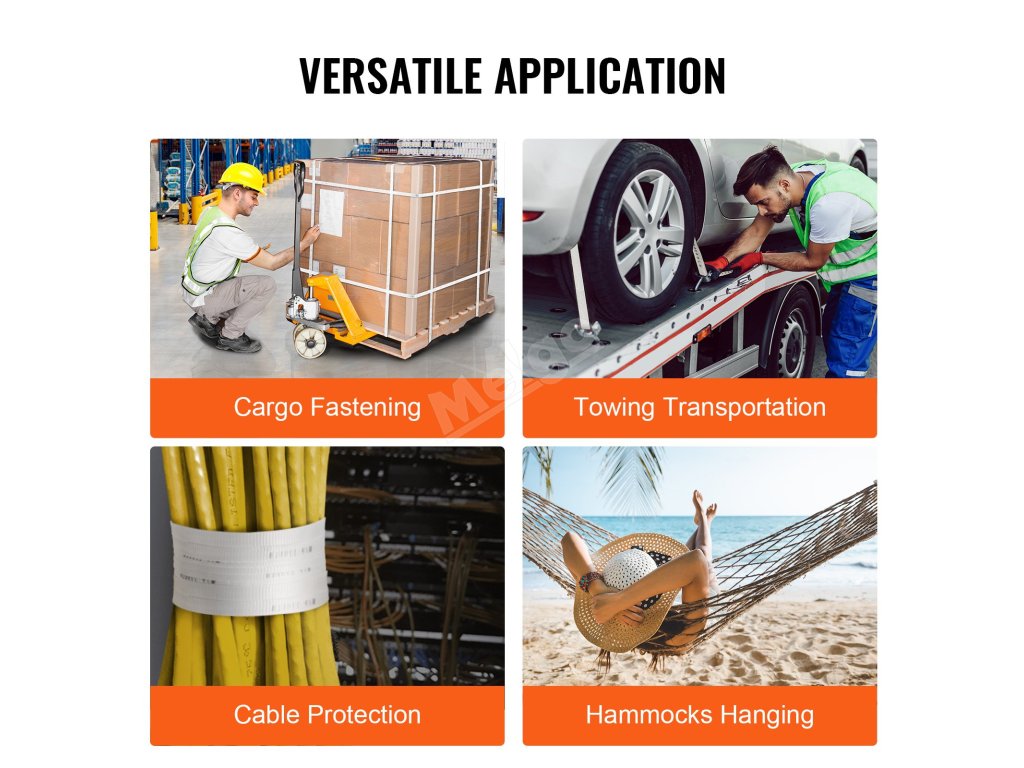 Plochá páska VEVOR z průmyslového polypropylenu (PP) zaručuje stabilitu a spolehlivost i při vysokých rychlostech. Její hladké vytažení v kombinaci s pouzdrem zaručuje špičkový výkon, který je ideální pro naléhavé situace při zapojování.