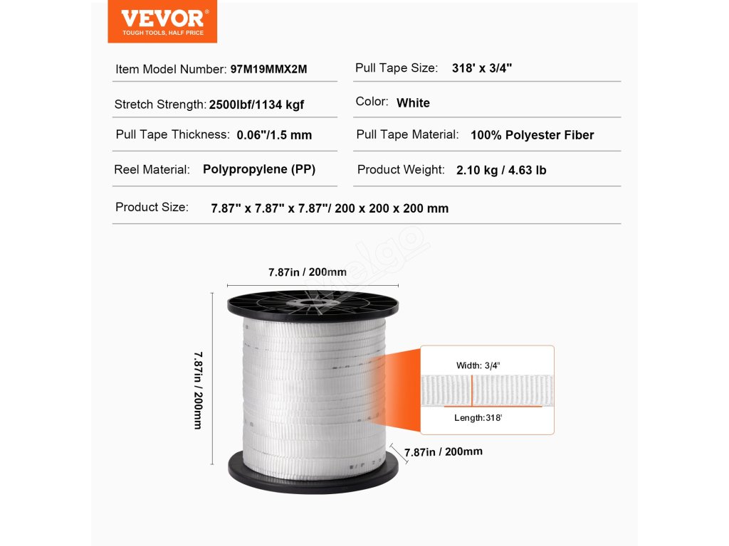 | Velikost pásky pro tažení | 318' x 3/4" (96,9 m x 1,9 cm) |