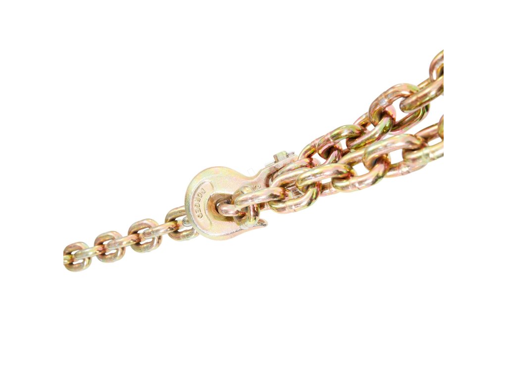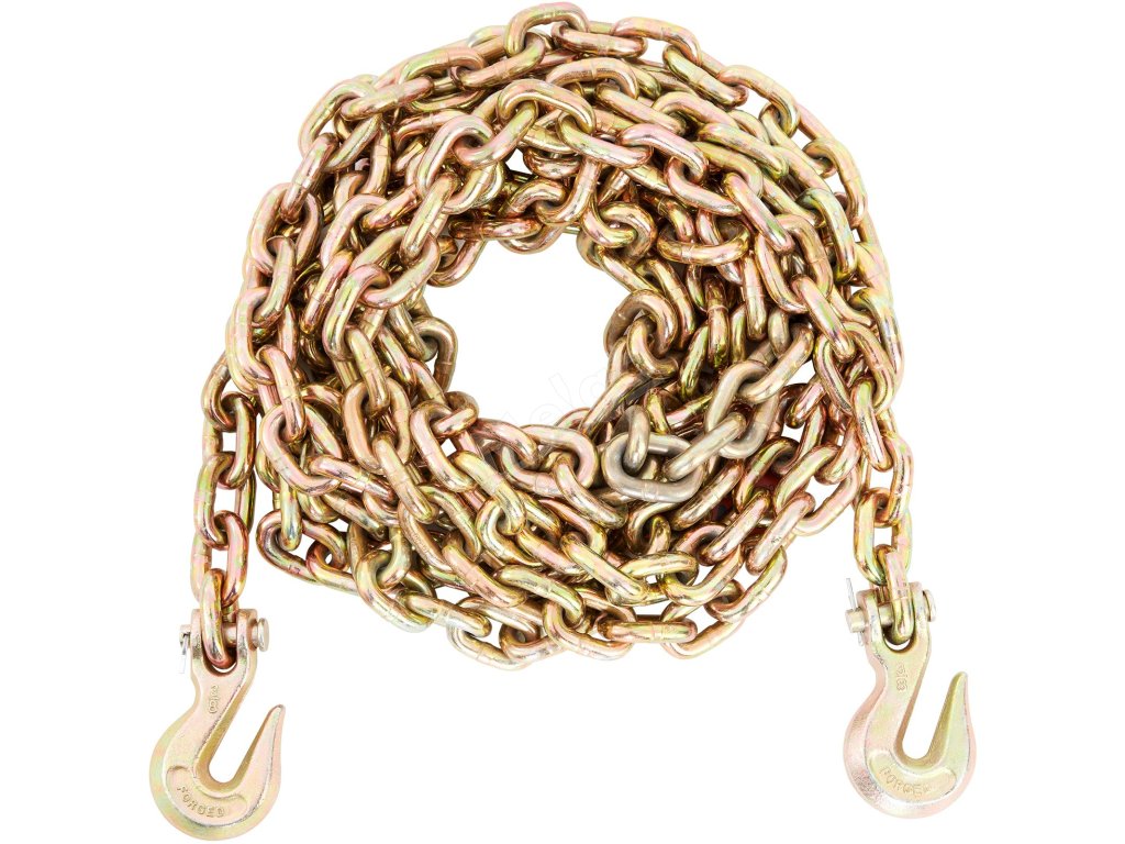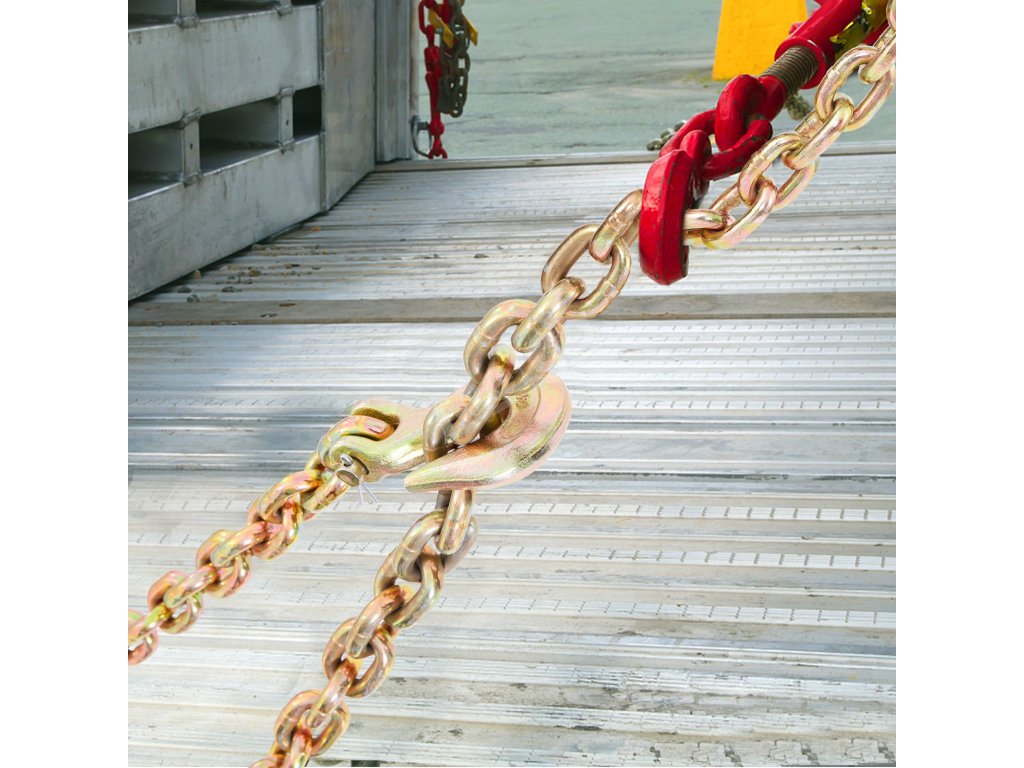 Nezáleží na tom, či ide o zariadenie na plošinových ložiskách alebo prívesoch, zaistí bezpečnú prepravu. Dĺžka 20 stôp poskytuje dostatok priestoru na flexibilné použitie. Ľahko tak zaistíte náklad. Vďaka úchopným hákom, ktoré poskytujú dostatok priestoru na manévrovanie okolo vozidla, je ľahké všetko zabezpečiť. Pevnosť reťaze zaručuje, že zariadenie zostane počas prepravy na svojom mieste. To znamená, že preprava ťažkých strojov nebude náročná. Pozinkovaná povrchová úprava chráni zariadenie pred nepriaznivými poveternostnými podmienkami. Váš náklad tak zostane bezpečný a nepoškodený. Naša reťaz je spoľahlivým nástrojom pre všetky vaše potreby zabezpečenia zariadenia. Jej robustná konštrukcia zaručuje, že bude dobre fungovať aj v akýchkoľvek podmienkach. Preto ju nájde každý, kto potrebuje prepravovať ťažké vybavenie, ako nepostrádateľnú.