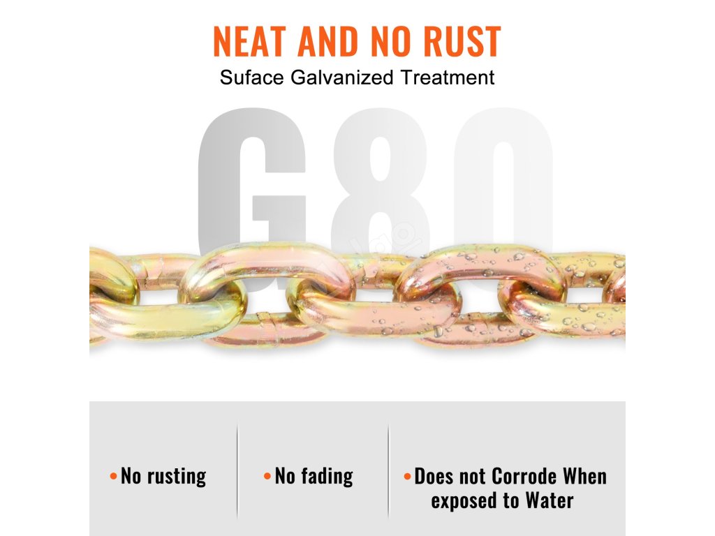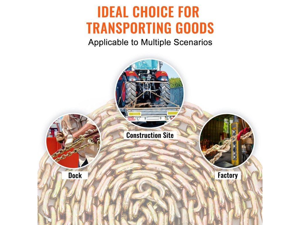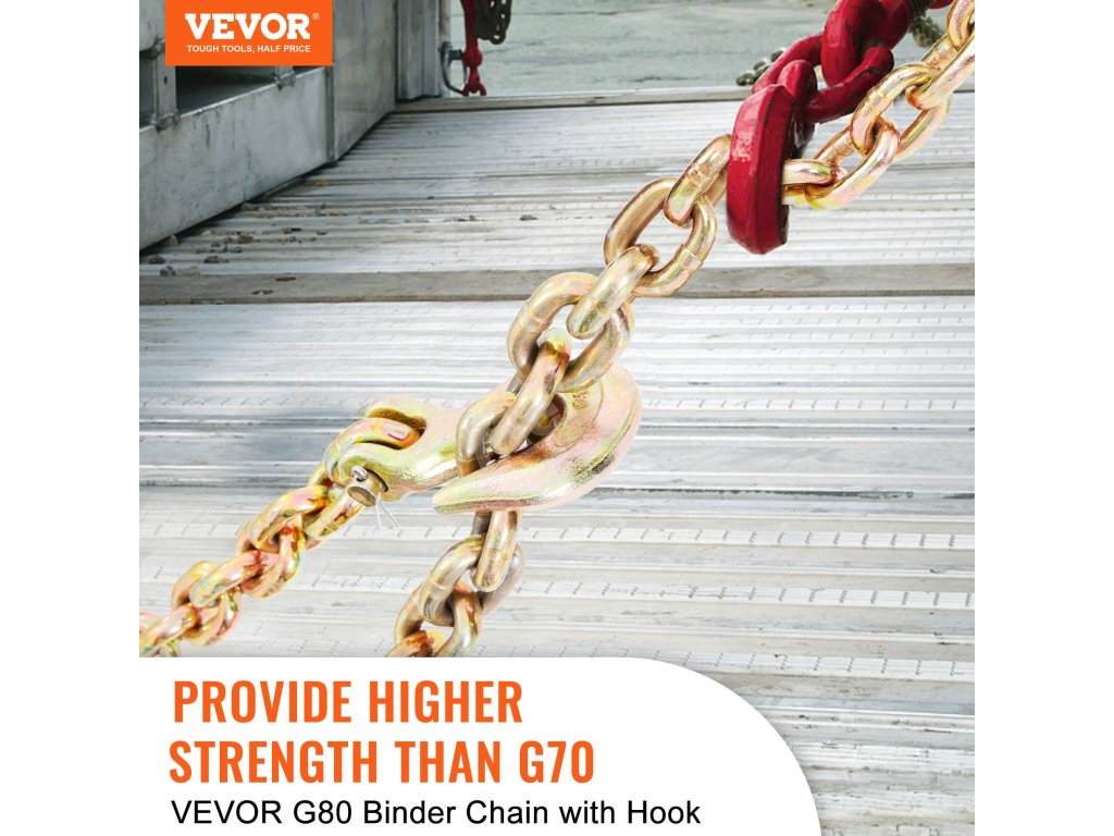Toto je prepravná viazacia reťaz VEVOR vyrobená tak, aby vydržala. Konštrukcia z mangánovej ocele zaručuje odolnosť. Má pozinkovaný povlak, ktorý ju chráni pred hrdzou a koróziou. Vďaka tomu zostane v dobrom stave dlhé roky. Aj pri častom používaní si zachováva svoju pevnosť a spoľahlivosť. Naša pevná konštrukcia zaručuje, že táto reťaz vydrží aj tie najnáročnejšie podmienky. Sme presvedčení, že zostane odolná aj v tých najnáročnejších podmienkach. Jej základom sú spoľahlivé materiály, ako je drevo, preglejka, kov alebo aj iný materiál, ktorý potrebujete.