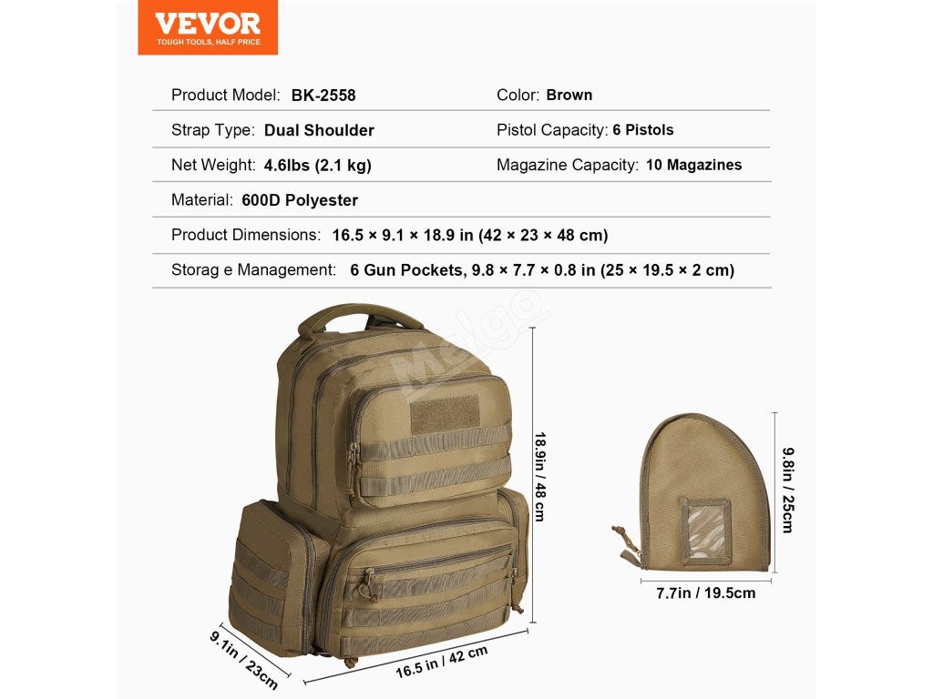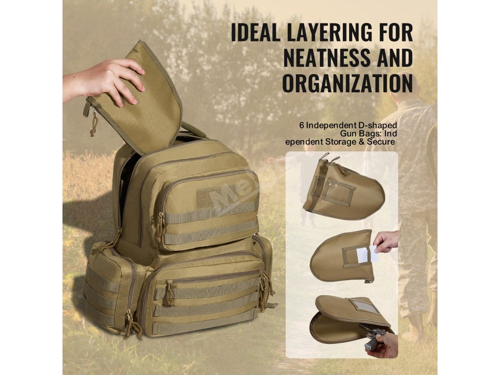 Taktický batoh na 6 pistolí, 10 zásobníků, uzamykatelný, hnědý