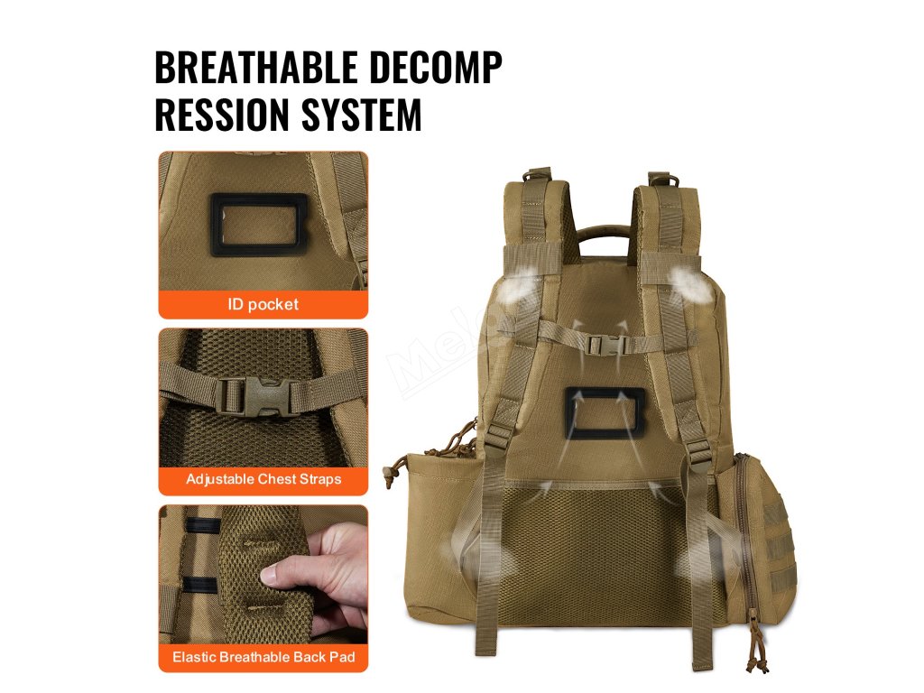 Prostorná hlavní přihrádka je vybavena 6 samostatnými kapsami na zbraně ve tvaru písmene D, které umožňují bezpečné uložení 6 pistolí různých velikostí. Přední kapsa je speciálně navržena pro uložení 6 zásobníků, což usnadňuje rychlý přístup k nim během lovu.