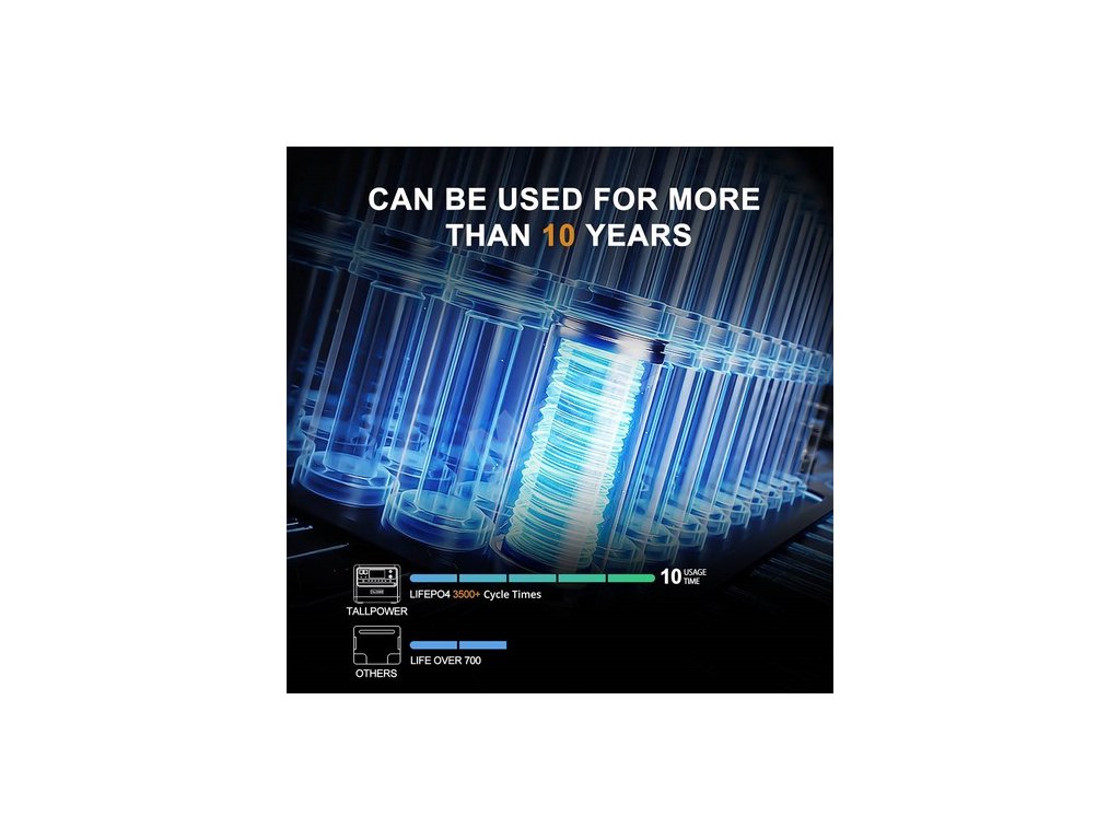 Vestavěná baterie využívá lithium-železo-fosfátovou baterii (LiFePO4), která má vynikající bezpečnost a dlouhou životnost a baterii lze používat přibližně 10 let. Je vybaven systémem správy baterie (BMS), který monitoruje a kontroluje vnitřní baterii, má ochranu proti přebití, nadměrnému vybití, přepětí, nadproudu a detekci teploty.