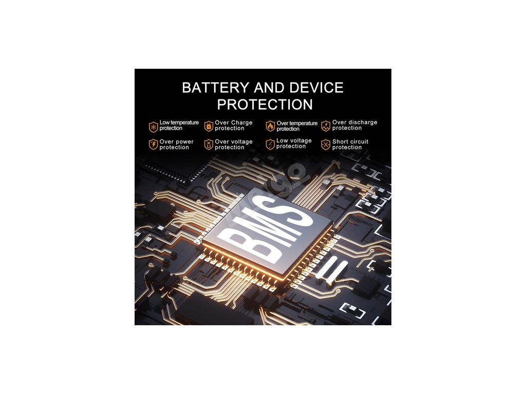 Vestavěná baterie využívá lithium-železo-fosfátovou baterii (LiFePO4), která má vynikající bezpečnost a dlouhou životnost a baterii lze používat přibližně 10 let. Je vybaven systémem správy baterie (BMS), který monitoruje a kontroluje vnitřní baterii, má ochranu proti přebití, nadměrnému vybití, přepětí, nadproudu a detekci teploty.