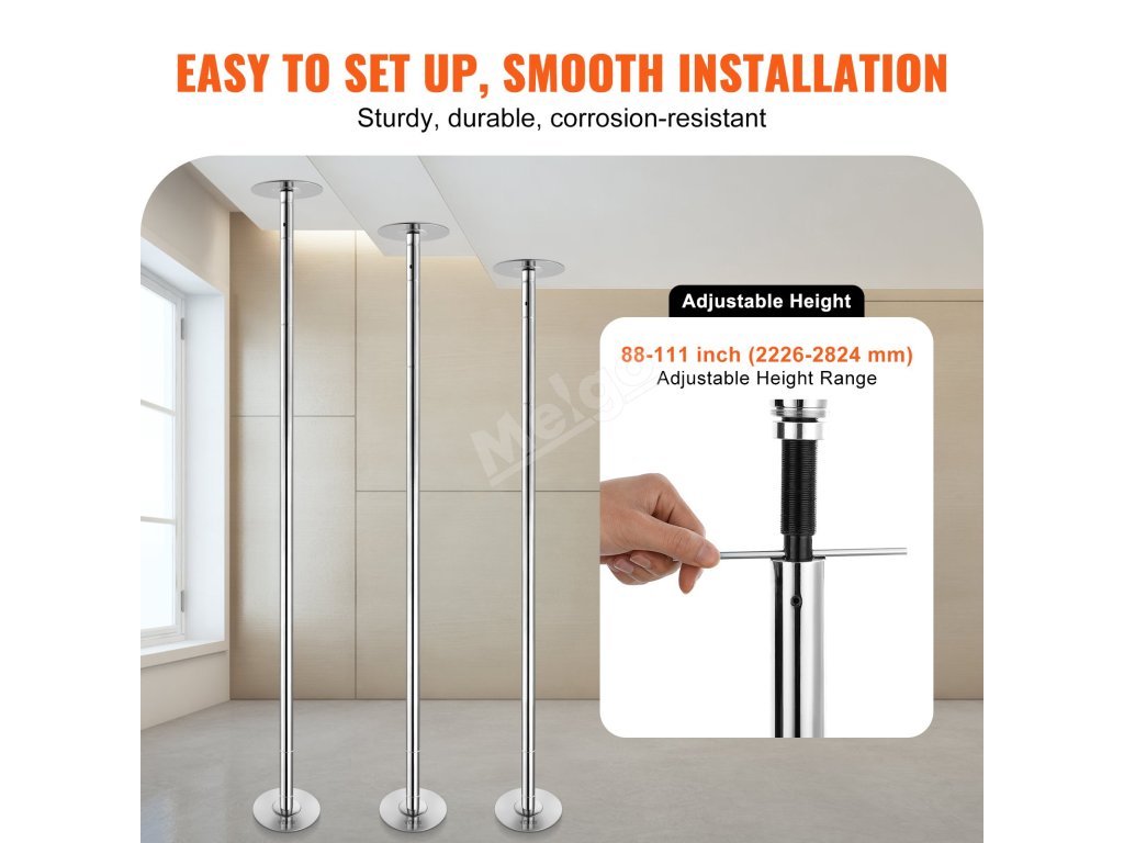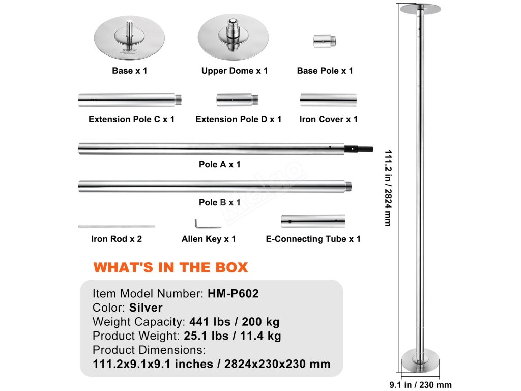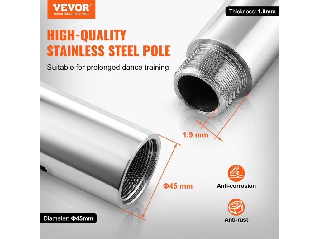 Tato přenosná taneční tyč je vyrobena ze standardní 45mm ocelové tyče, která zvyšuje pohodlí díky práškově lakované povrchové úpravě odolné proti korozi a rzi a poskytuje spolehlivou záruku bezpečnosti a trvanlivosti. Maximální nosnost: 200 kg/441 liber.