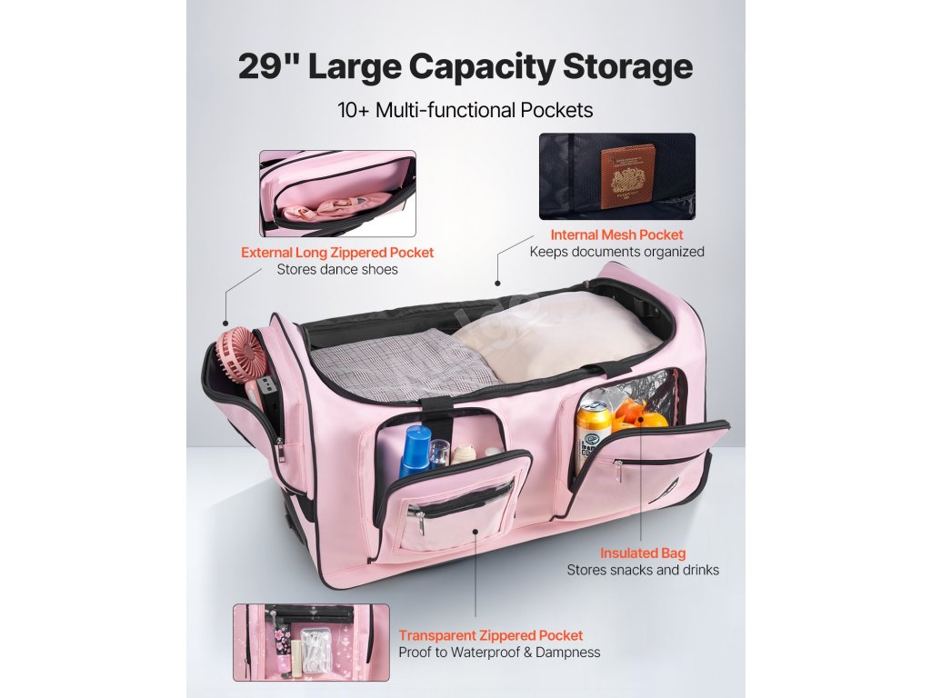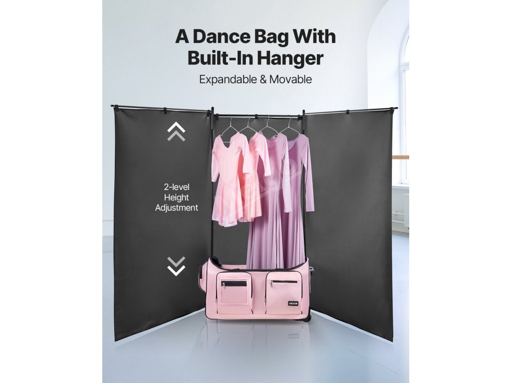 Taneční taška 736.6 mm, kolečka, usb, nastavitelný věšák, růžová