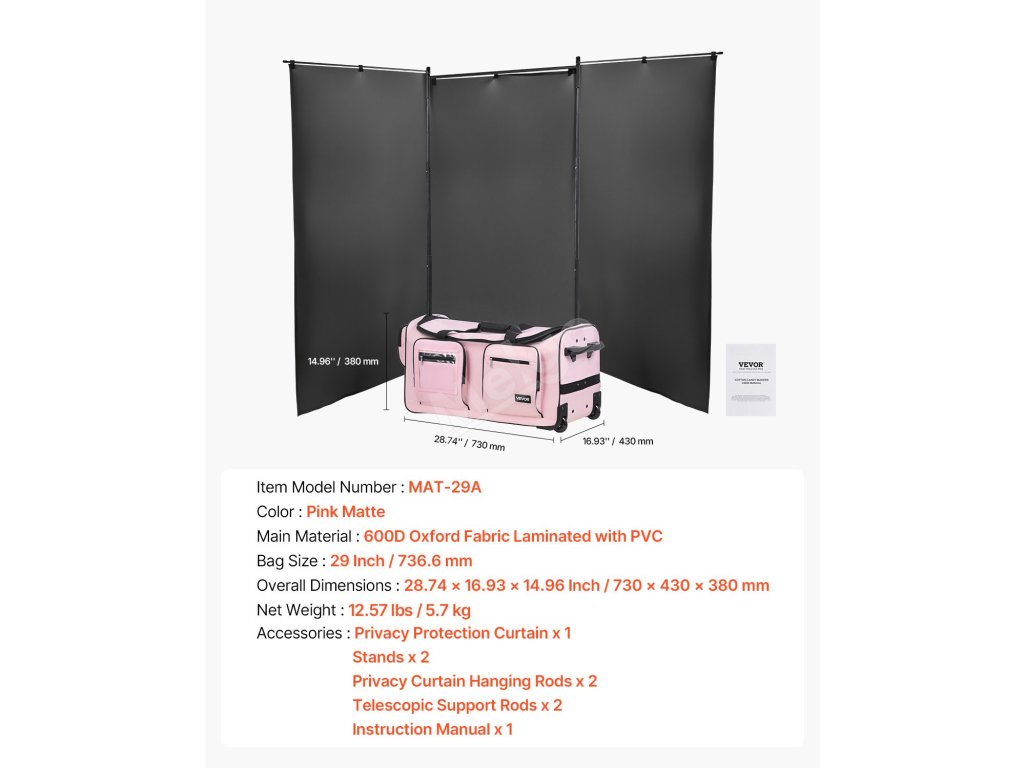 29palcová matná růžová cestovní taška na oděvy s věšákem a závěsem pro ochranu soukromí