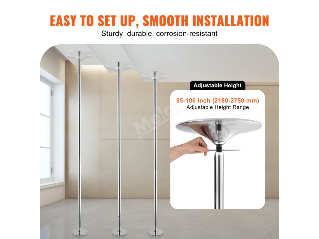 Taneční tyč 45 mm nerezová, otočně-statická, přenosná, nastavitelná