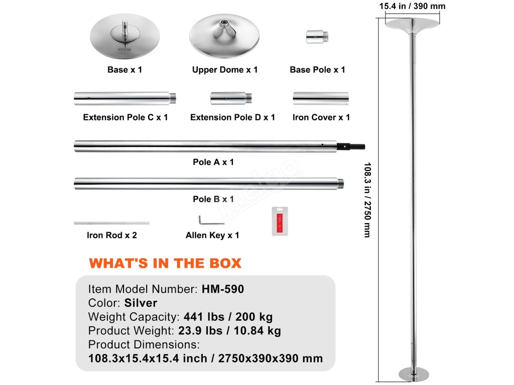 Tato přenosná taneční tyč je vyrobena ze standardní 45mm ocelové tyče, která zvyšuje pohodlí díky práškově lakované povrchové úpravě odolné proti korozi a rzi a poskytuje spolehlivou záruku bezpečnosti a trvanlivosti. Maximální nosnost: 200 kg/441 liber.