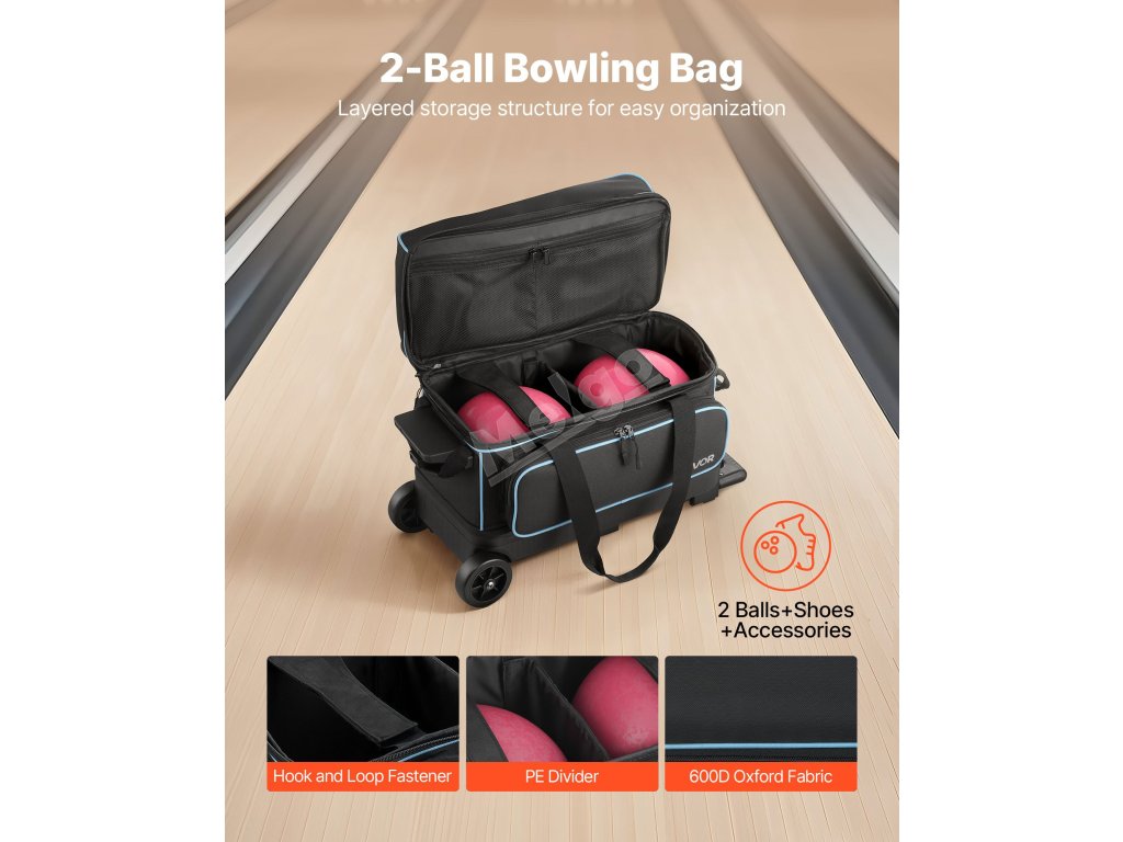 Naše bowlingová taška na 2 koule poskytuje spolehlivý úložný prostor pro vaše bowlingové vybavení. Tkanina Oxford 600D odolná proti roztržení a potažená PVC zvládne i nepřízeň počasí. Dno je vybaveno 5mm PE deskou odolnou proti nárazu. Dvouhlavý kovový zip a zesílené švy zajišťují odolnost.