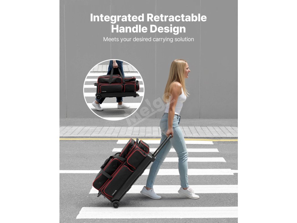 Nastavitelná teleskopická rukojeť a rukojeť s háčkem a smyčkou na bowlingových taškách na kolečkách podporují režim nošení i tahání, což zvyšuje mobilitu o 51 %.