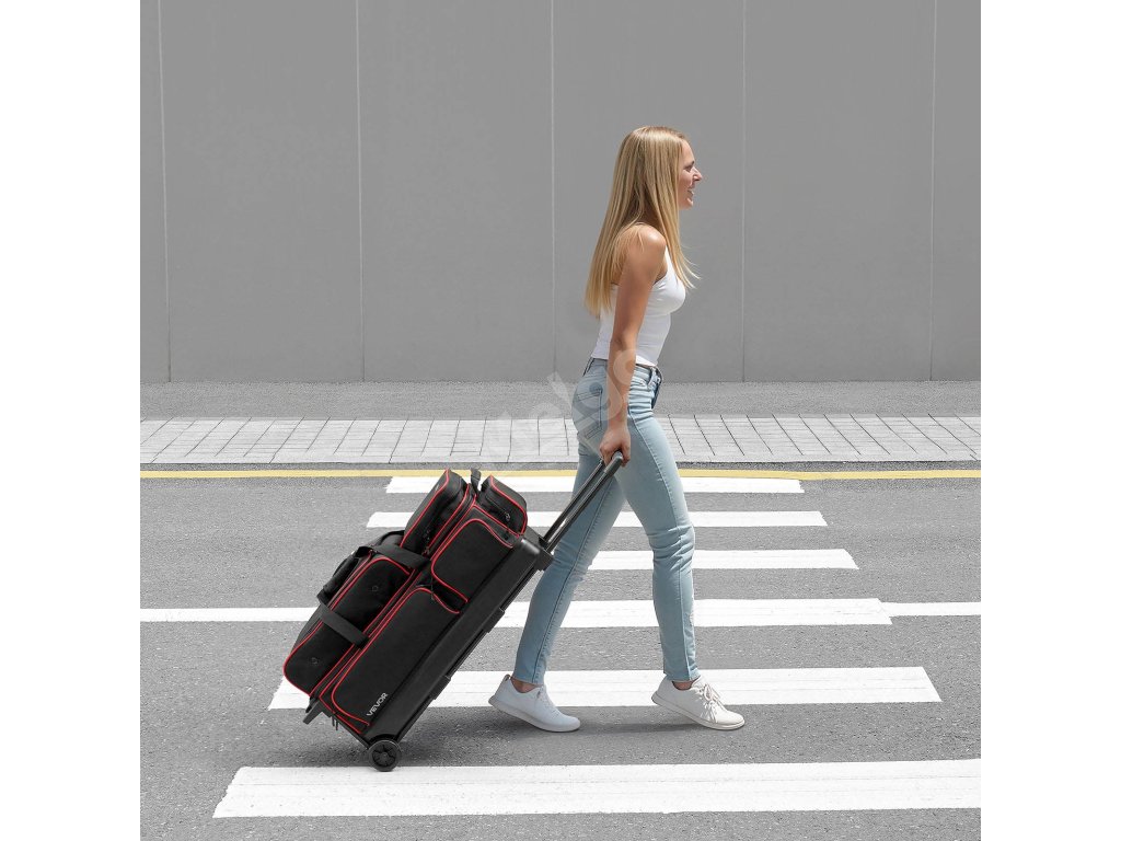 Taška na 3 bowlingové míče, kolečka, boty US 16, rukojeť 1050 mm